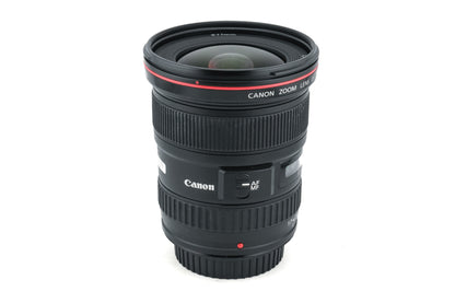 Autofocus wide-angle zoom lens made for EF-mount DSLR cameras by Canon starting in 2003. It is part of Canon's L series of lenses designed for professional use and has a weather-sealing gasket. It also uses Canon's ultrasonic focusing motor (USM) for autofocus. Plastic and metal body available in black.