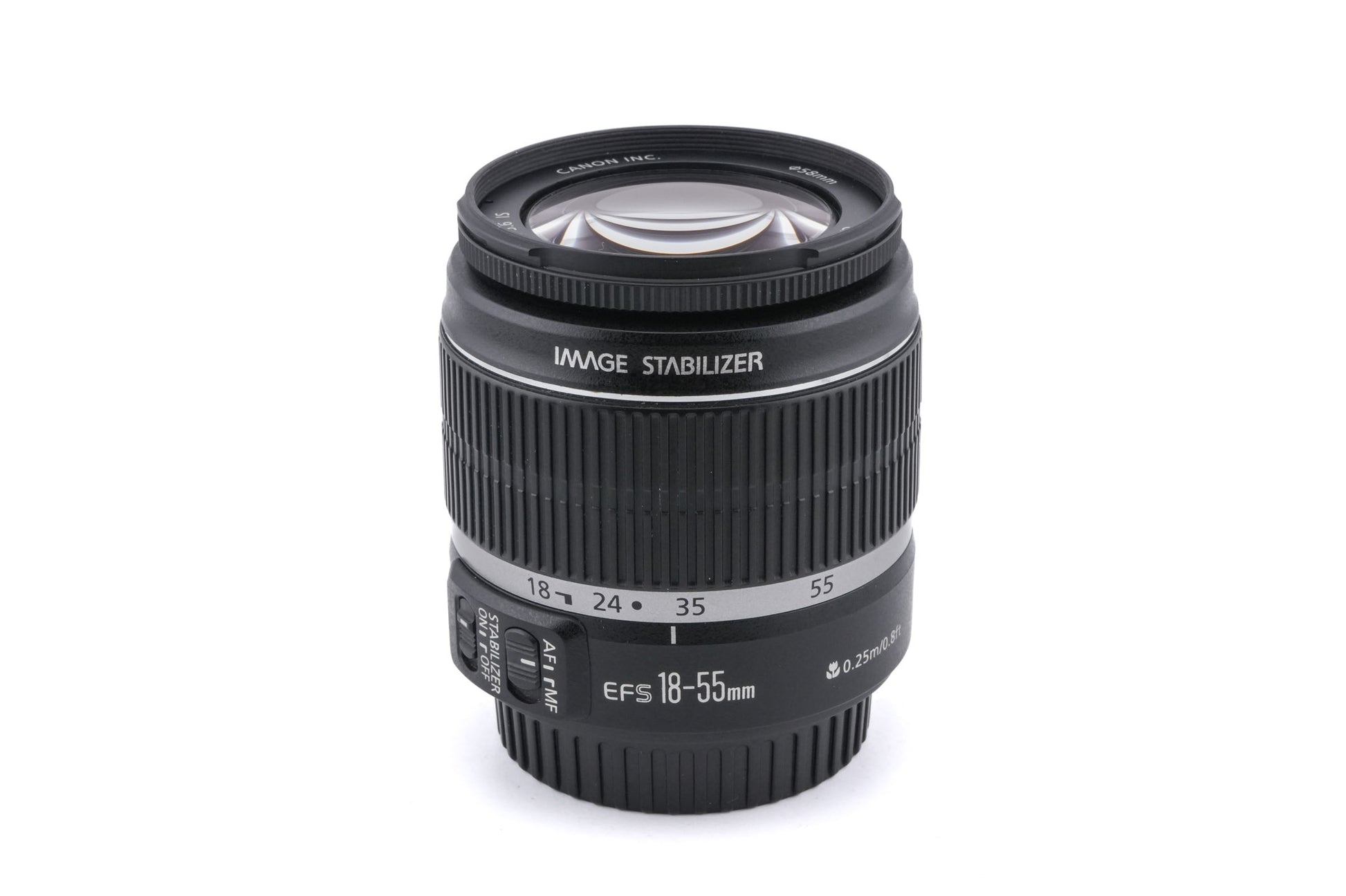 Autofocus standard zoom lens made for EF-S mount DSLR cameras introduced by Canon. It gives the equivalent field of view to a 27-83mm lens on full-frame / 35mm. It also has image stabilization (IS). Plastic body available in black.