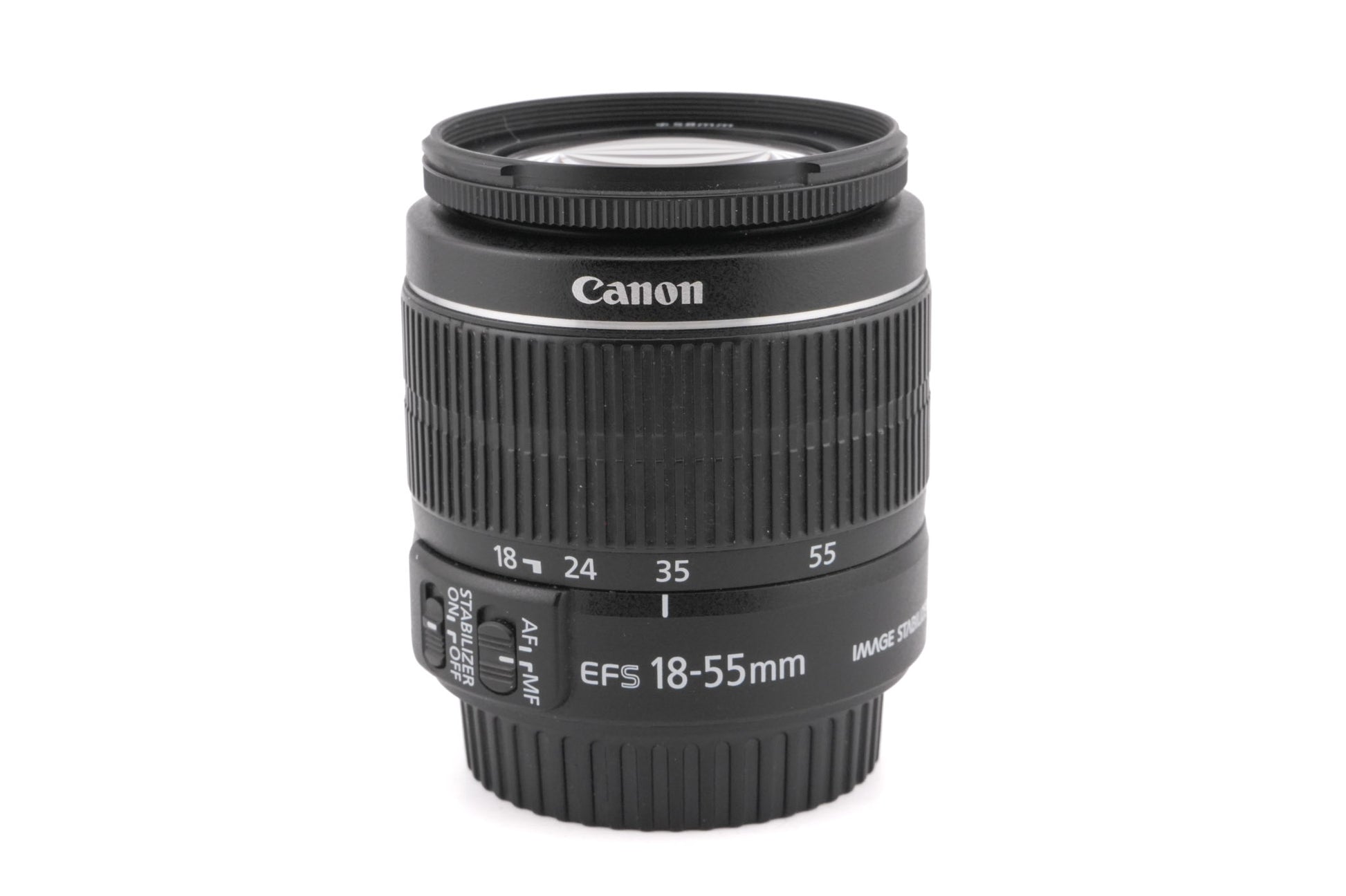 Autofocus zoom lens made for EF-S mount digital SLRs by Canon. It gives the equivalent field of view to a 27-82.5mm lens on full frame/35mm. This is the second EF-S kit lens that has image stabilization (IS). Plastic body available in black.