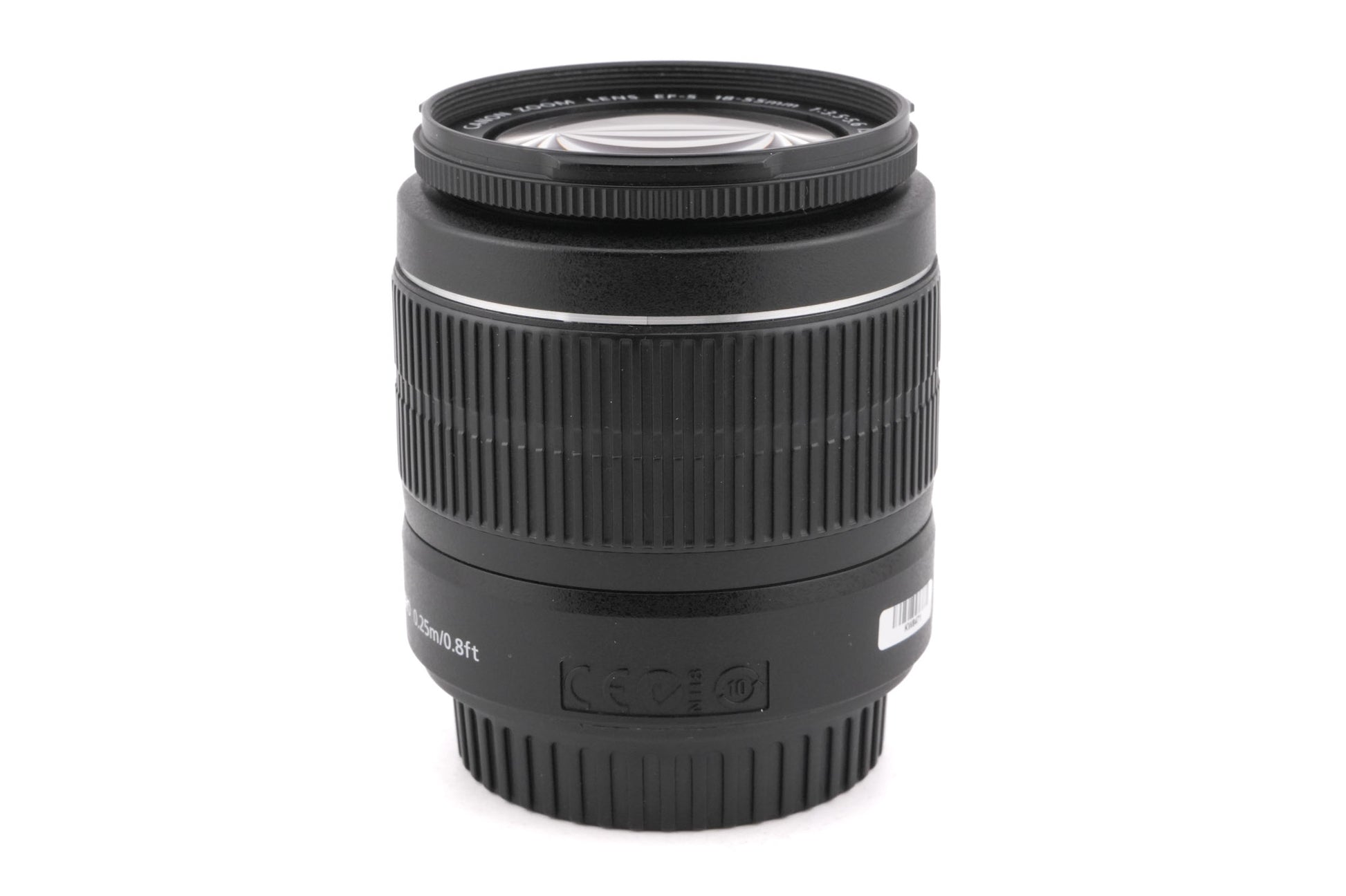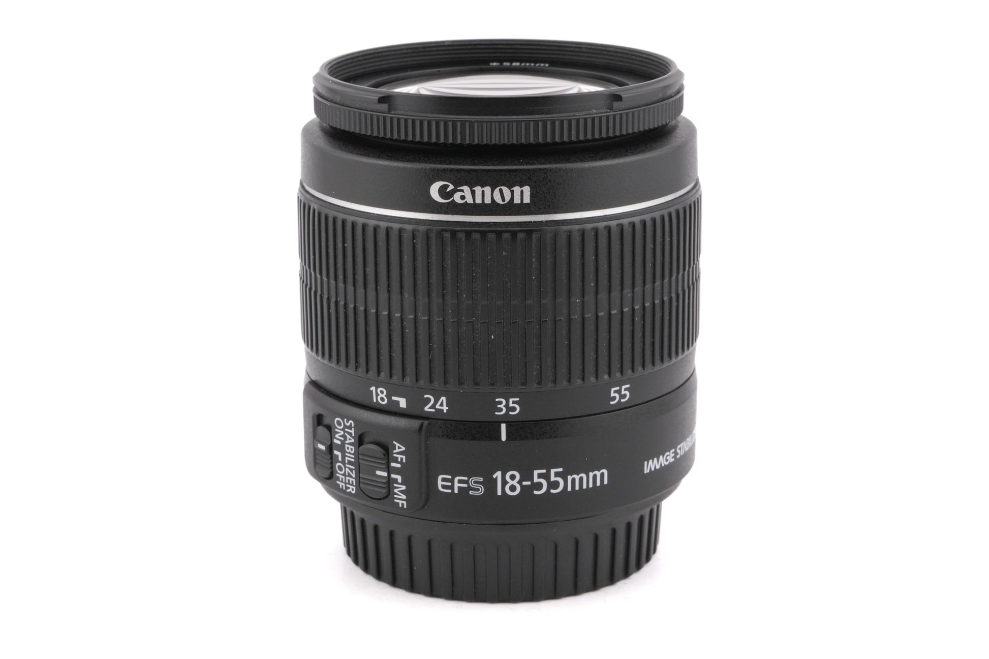 Autofocus zoom lens made for EF-S mount digital SLRs by Canon. It gives the equivalent field of view to a 27-82.5mm lens on full frame/35mm. This is the second EF-S kit lens that has image stabilization (IS). Plastic body available in black.
