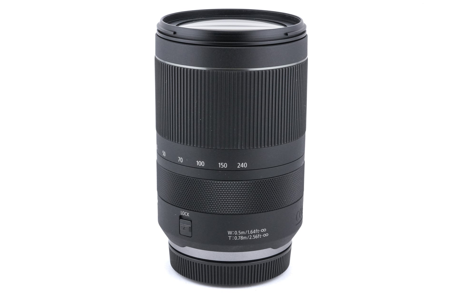 Autofocus superzoom lens made for RF mount digital mirrorless cameras by Canon. It has an image stabilizer (IS) and uses an ultrasonic focusing motor (USM) for autofocus. Metal/plastic body available in black.