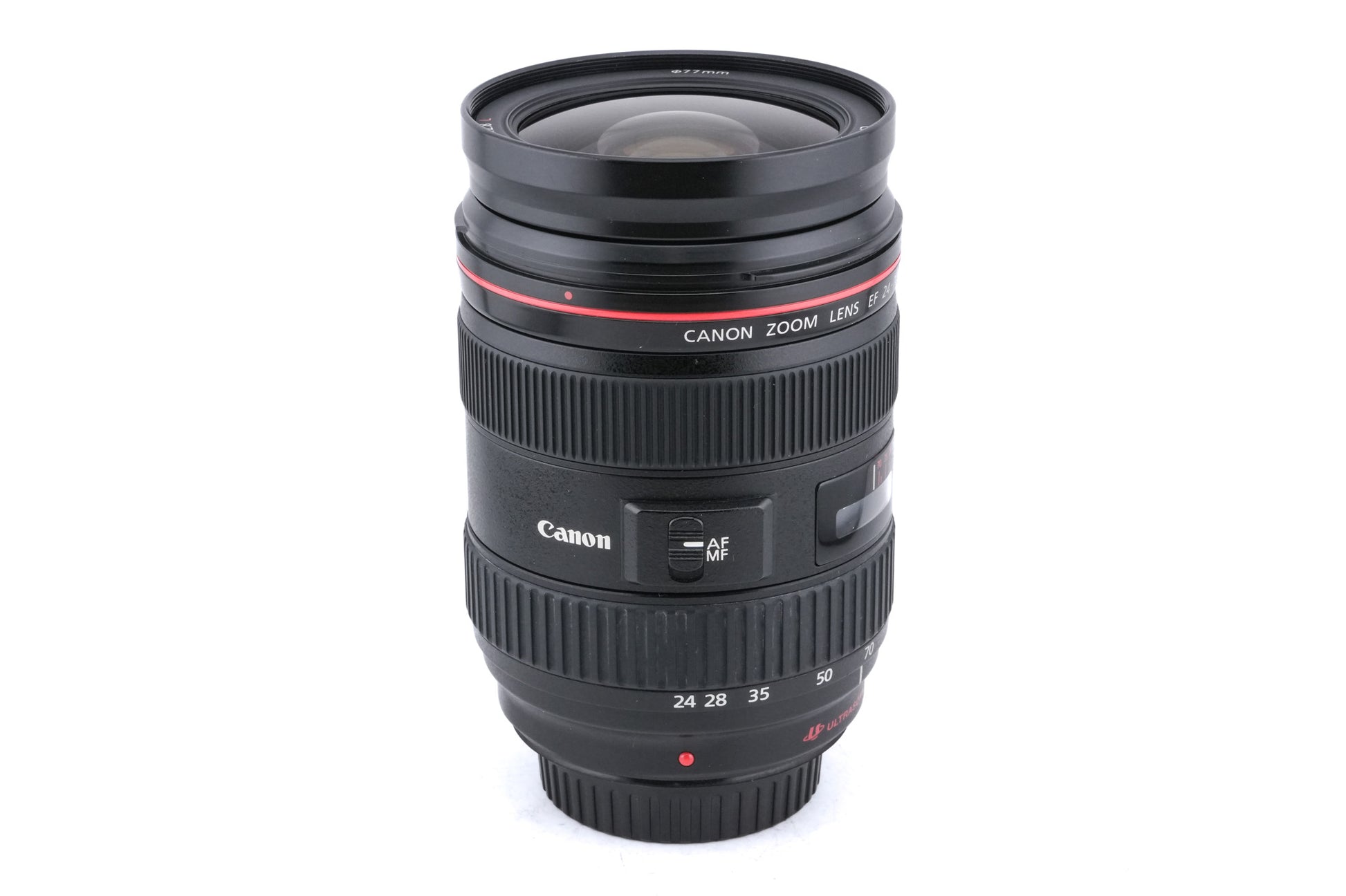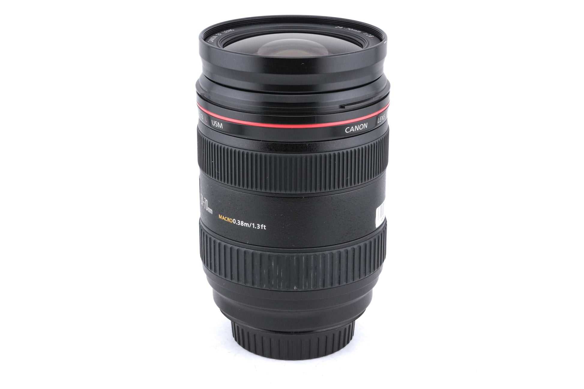 Autofocus normal zoom lens made for EF-mount (D)SLRs by Canon. It is part of the professional L series of lenses and features an ultrasonic motor (USM) for focusing. Plastic/metal body available in black.