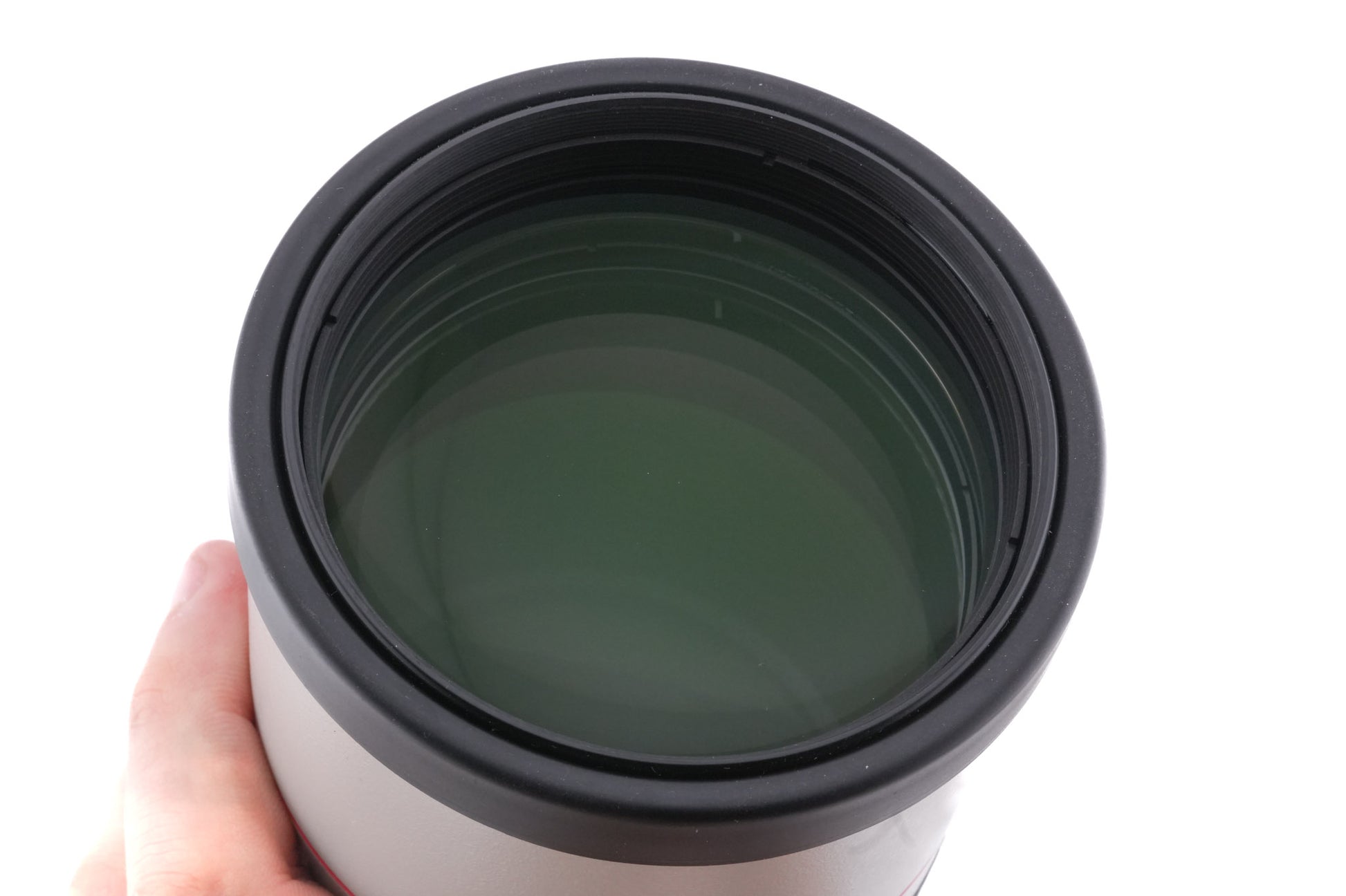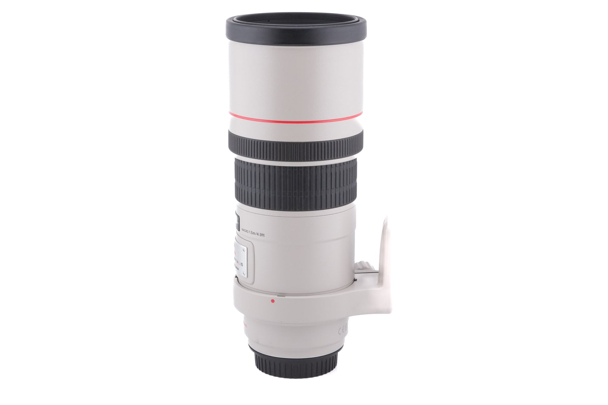 Autofocus telephoto lens made for EF mount SLRs by Canon. It's part of their L series of professional lenses. This lens has an image stabilizer (IS) and uses an ultrasonic focusing motor (USM) for autofocus. Plastic/metal body available in beige.