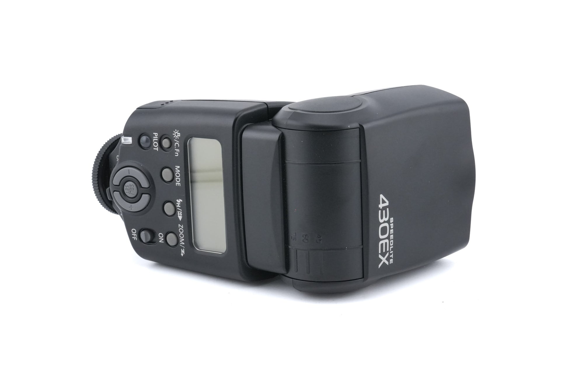 Flash released by Canon in 2005. This was the first generation of the 430EX. It's compatible with EF and EF-S mount DSLRs and has a tilt/swivel head. It can automatically zoom to compensate for lenses from 24-105mm. Plastic body available in black.