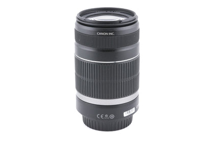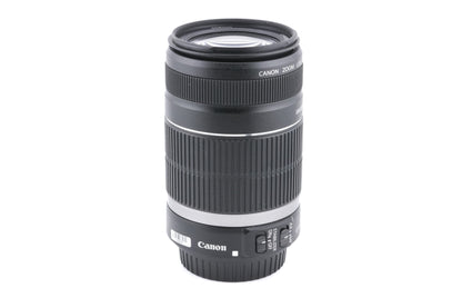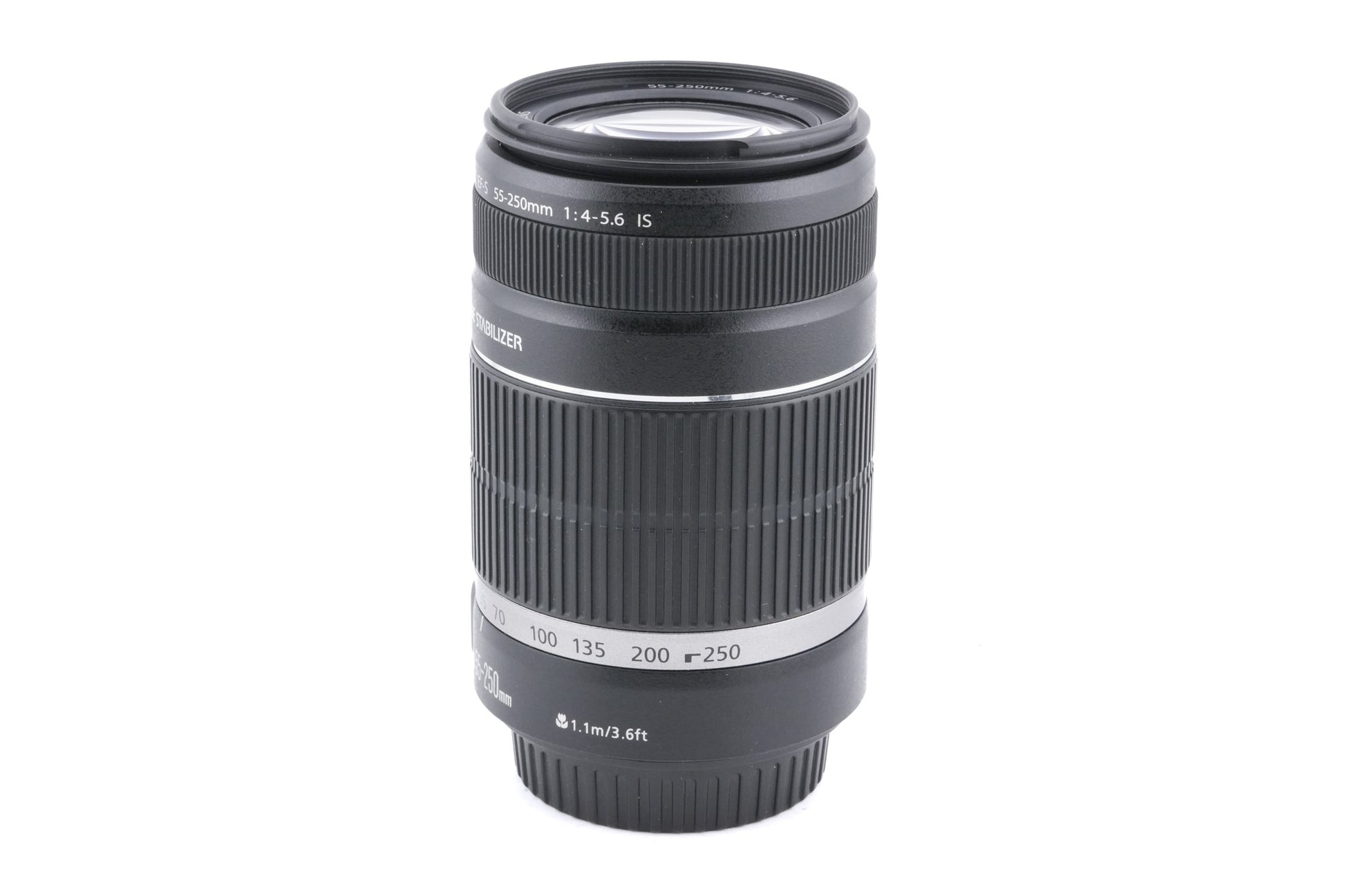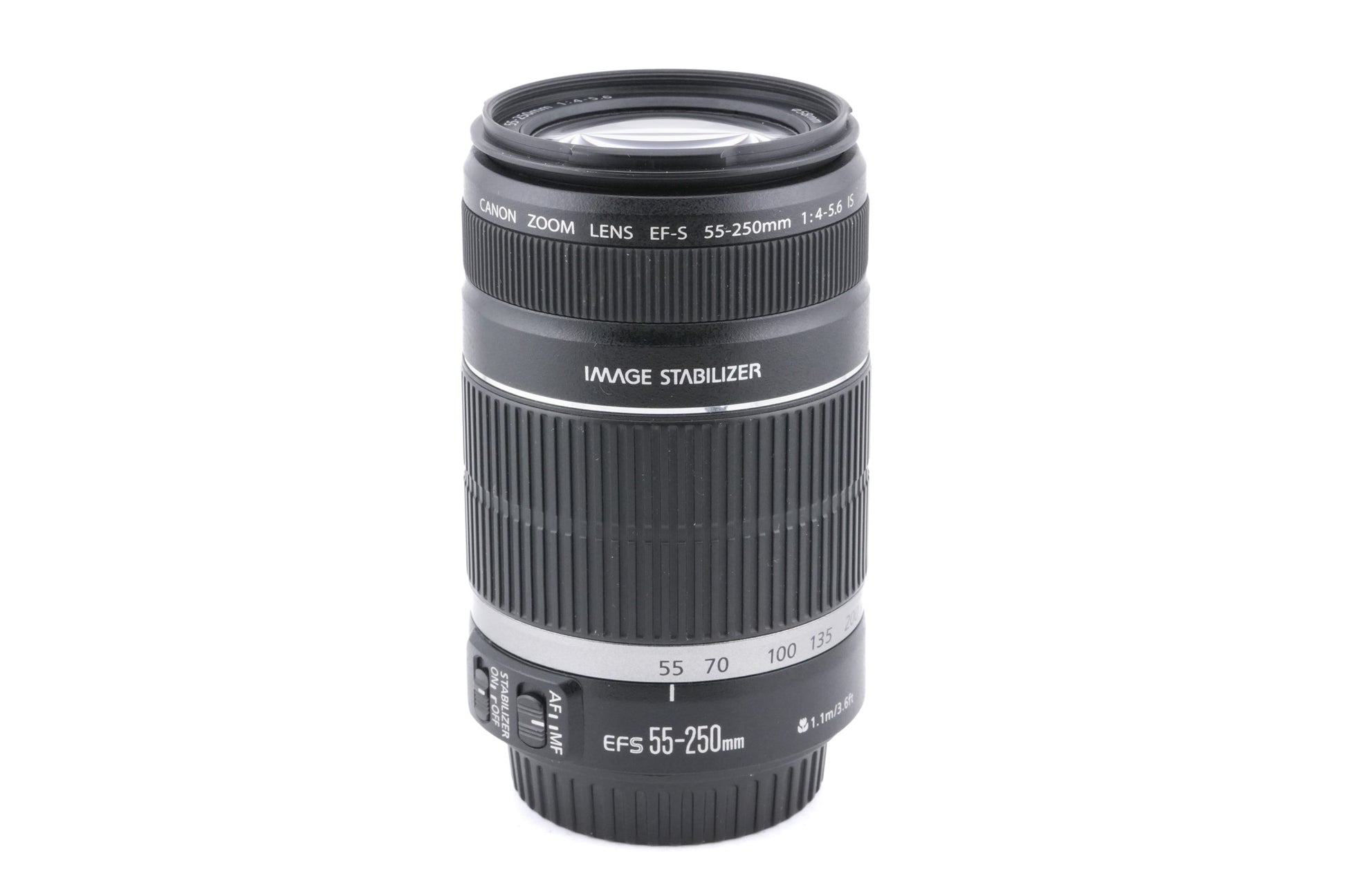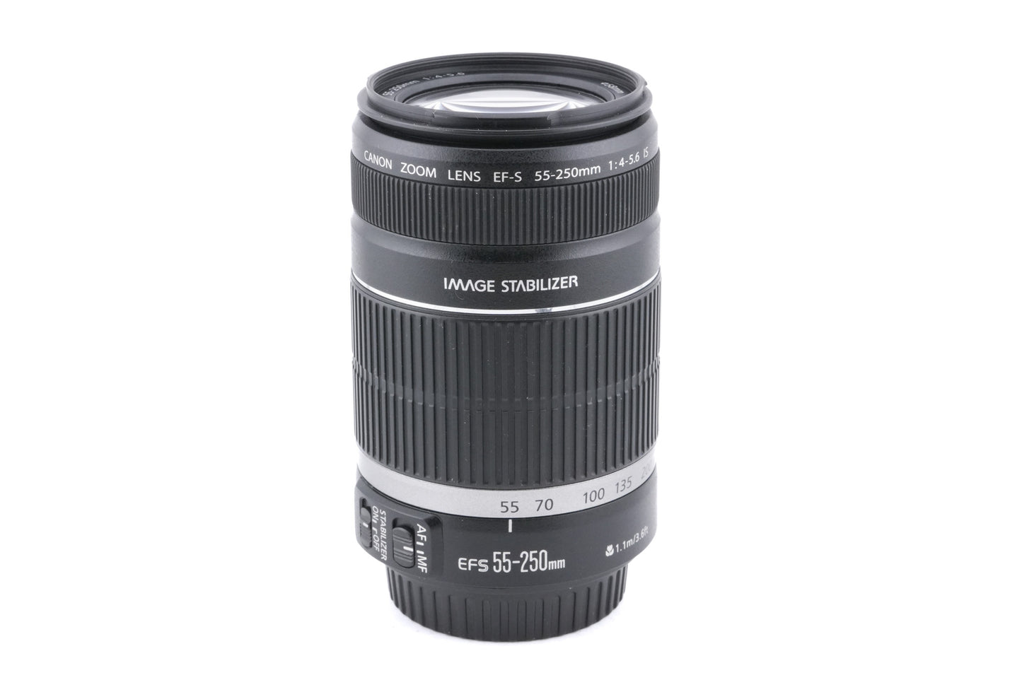 Autofocus telephoto zoom lens made for EF-S mount digital SLR cameras by Canon. It gives the equivalent field of view to an 82.5-375mm lens on full frame/35mm. It has a built-in image stabilizer (IS). Plastic body available in black.