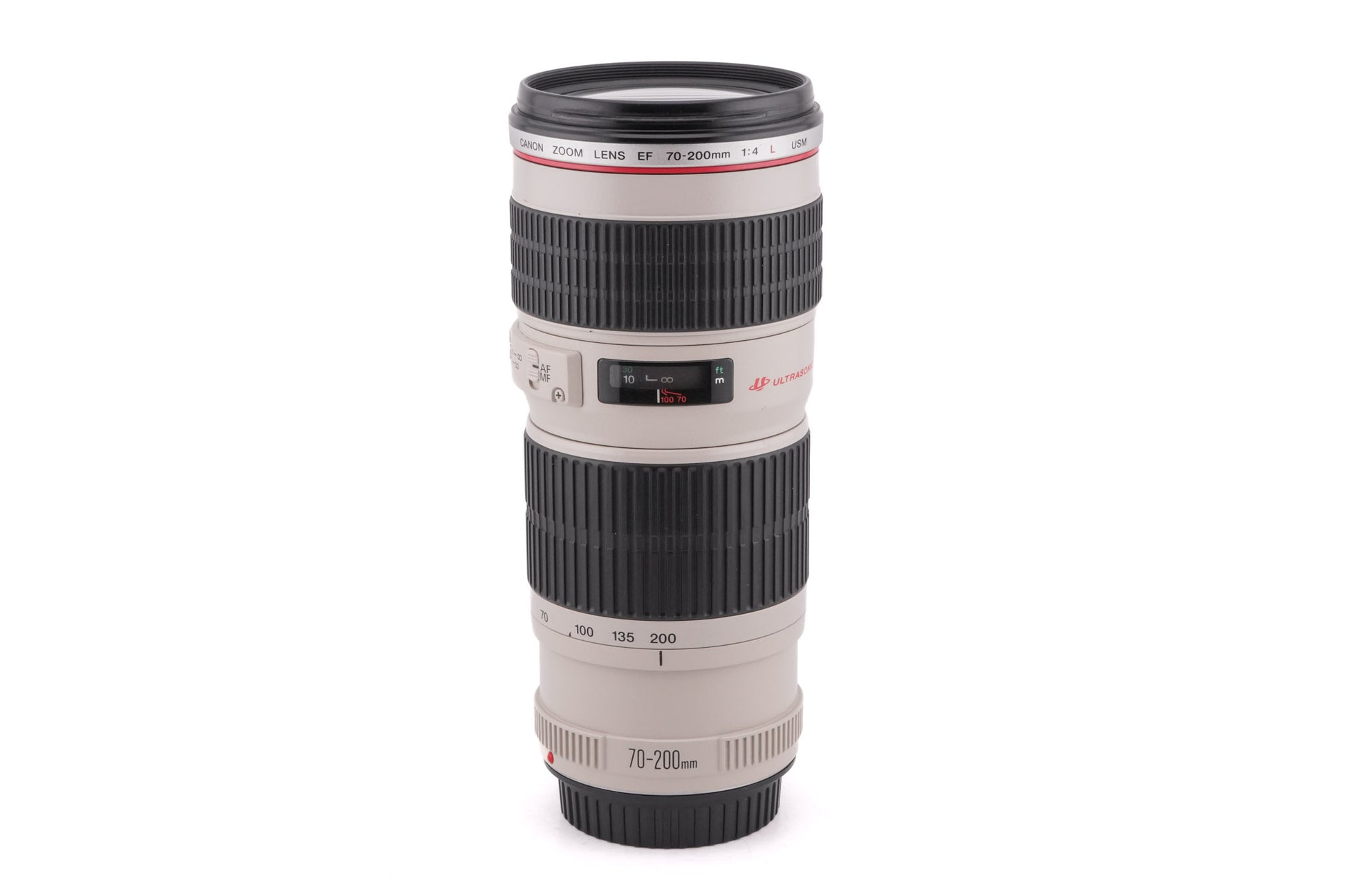 Autofocus telephoto zoom lens made for EF-mount (D)SLR cameras introduced by Canon starting in 1999. This first version does not have image stabilization. It uses an ultrasonic focusing motor (USM). Plastic and metal body available in white