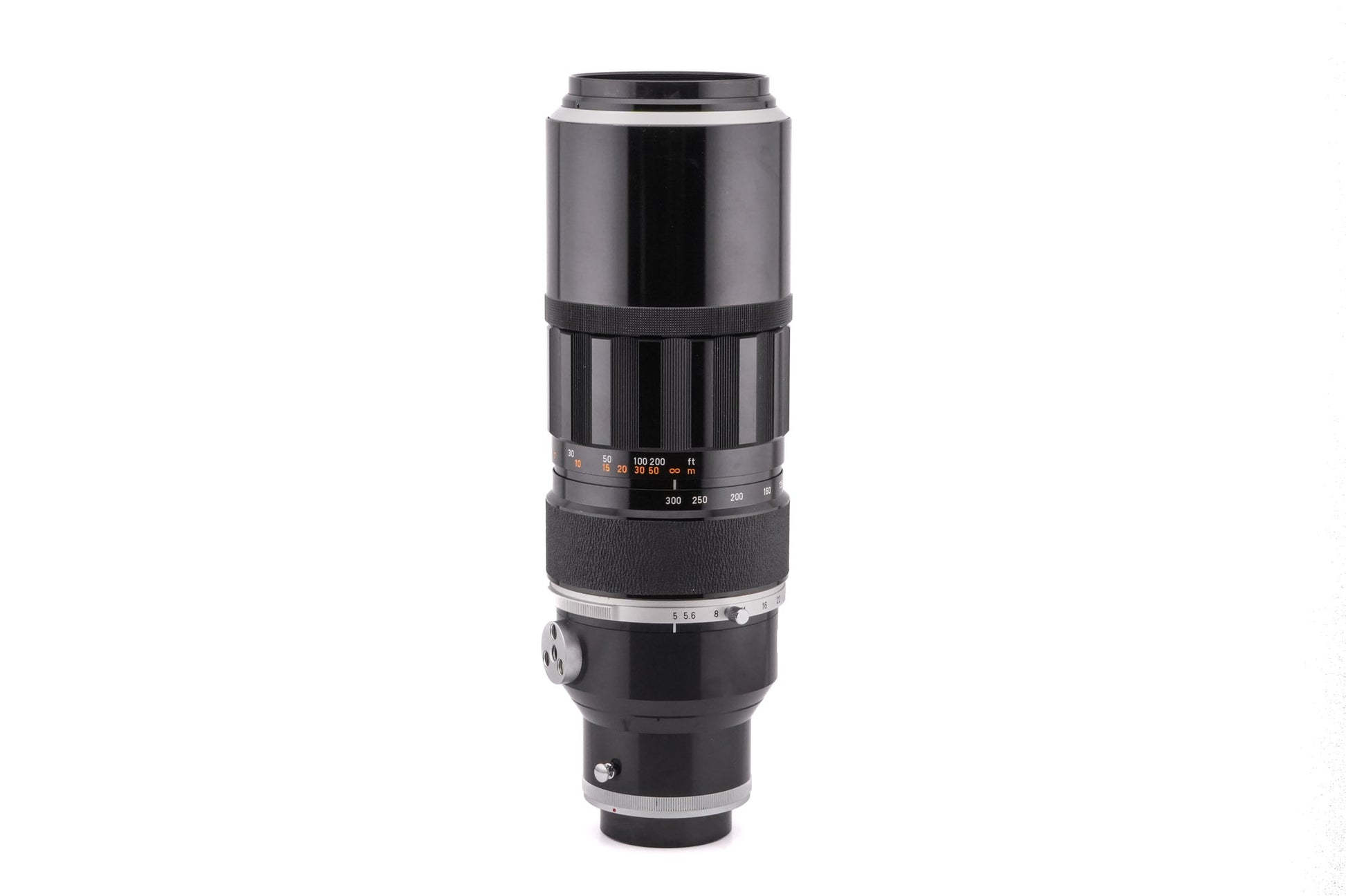 Manual focus telephoto zoom lens made for FL mount 35mm SLRs by Canon starting in 1965. The original price (99,500 Yen) is the equivalent of around 2700 Euros in 2025. Metal body available in black.