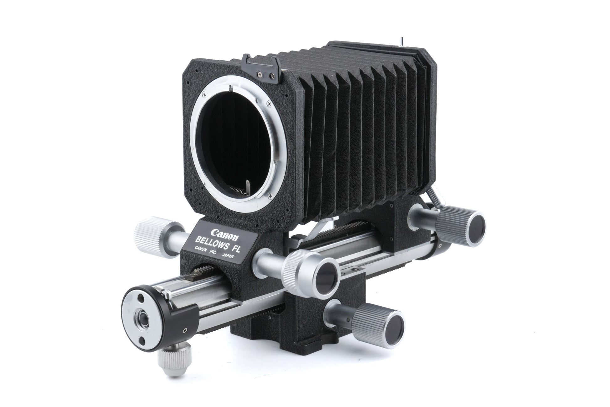 Bellows for macro photography made by Canon for Canon FL mount 35mm SLR film cameras. Metal body available in silver.