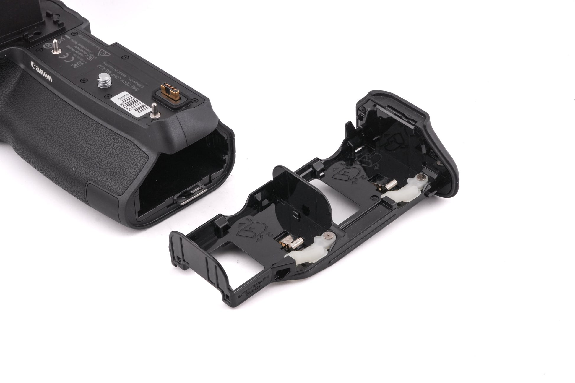 Battery grip made for the Canon EOS R digital SLR camera made by Canon. It has controls for vertical use. Plastic body available in black.