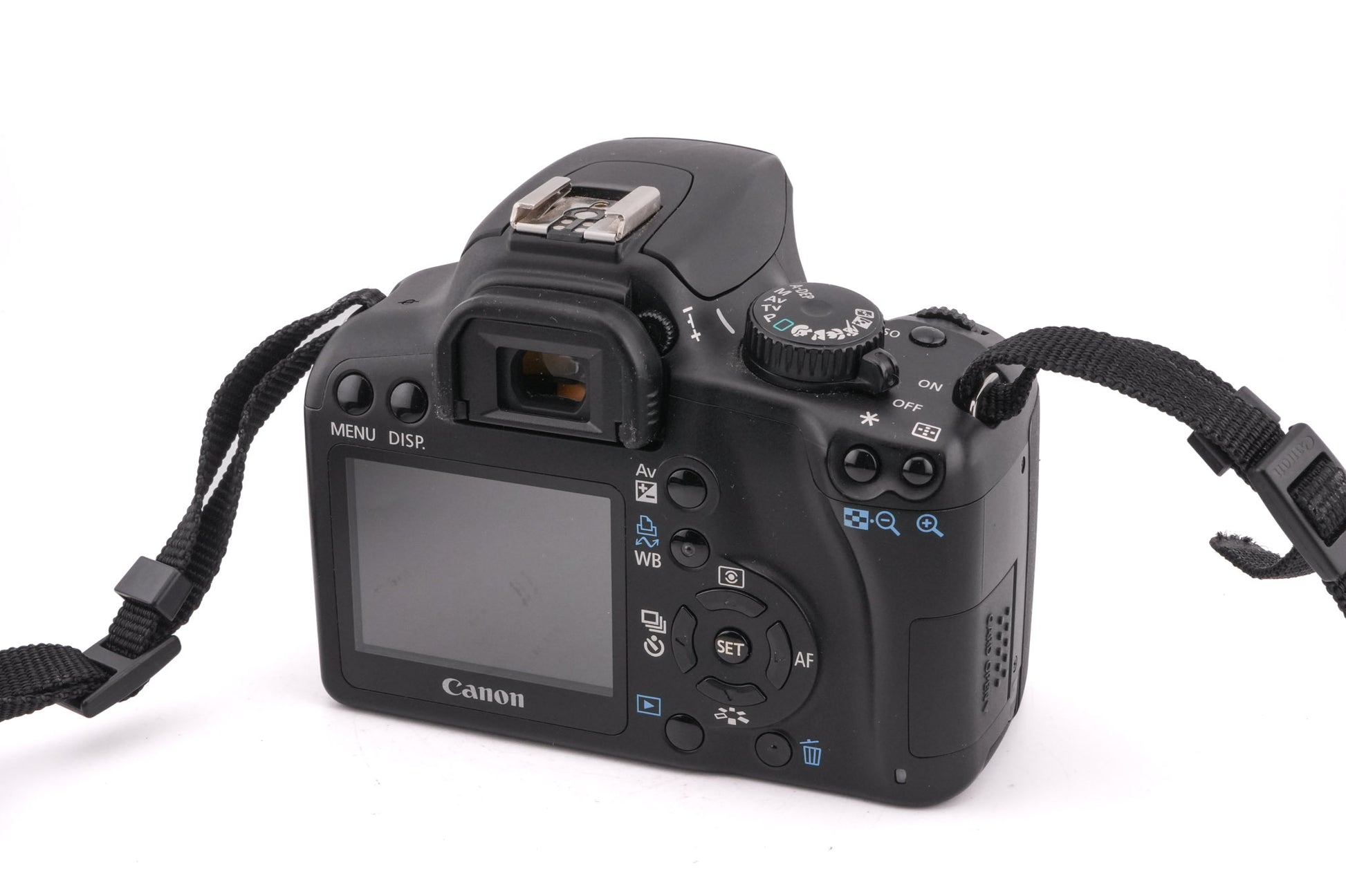Autofocus EF-S mount DSLR camera released by Canon in 2008. It was also sold as the Digital Rebel XS (NA) and the Kiss F (JP). Plastic body available in black.
