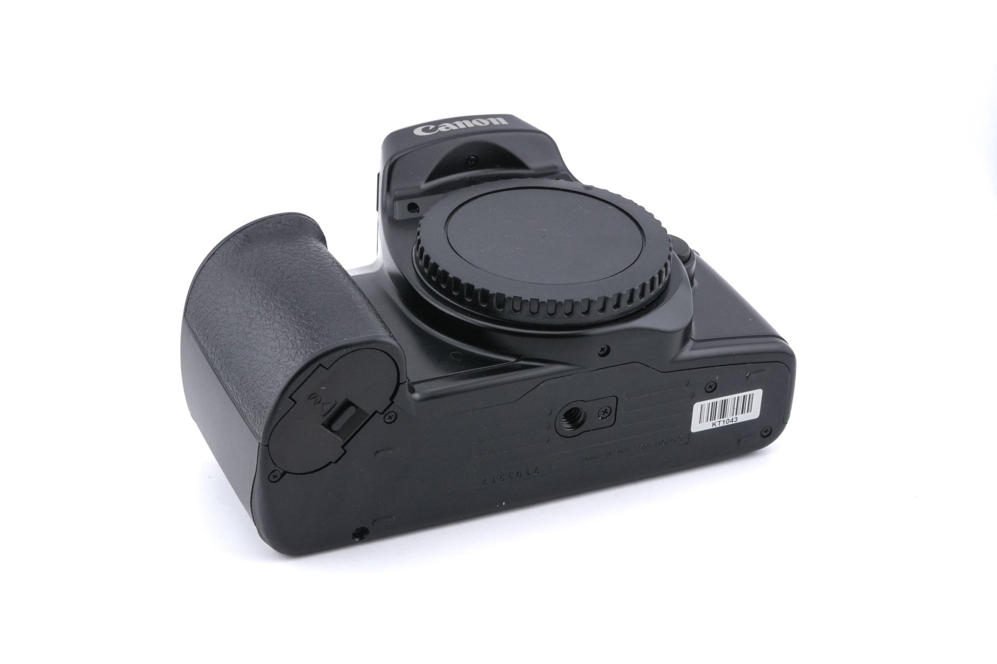 Autofocus EF-mount 35mm SLR camera released by Canon in 1992. It was sold in America under the name Canon EOS Rebel S II. It has a built-in flash. Plastic body available in black.