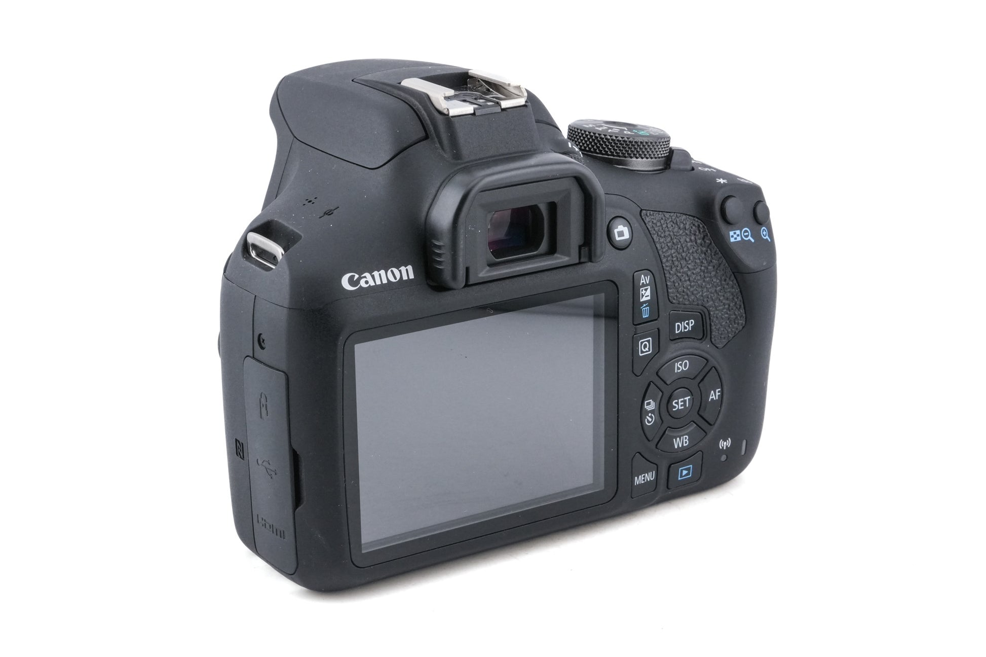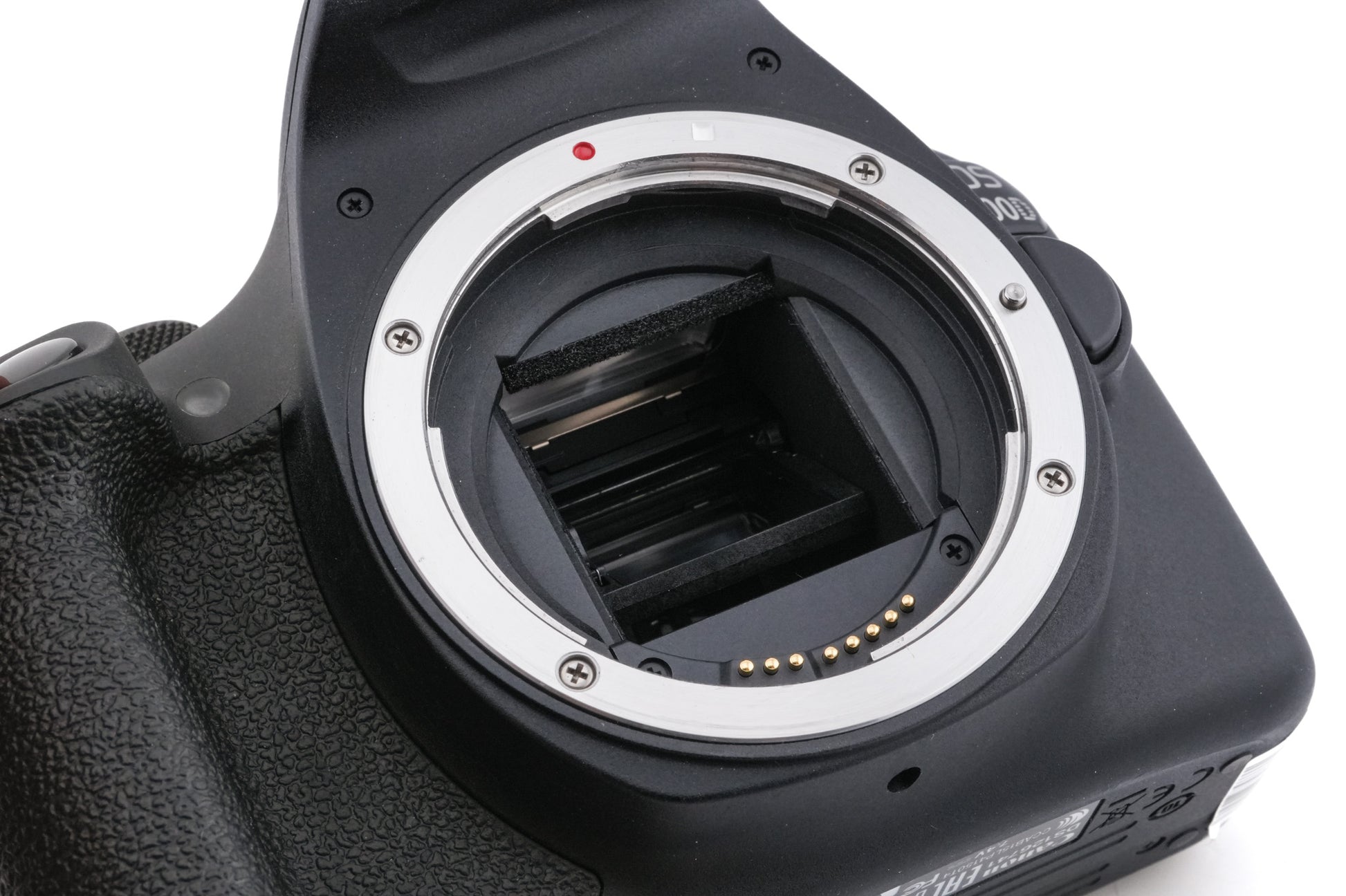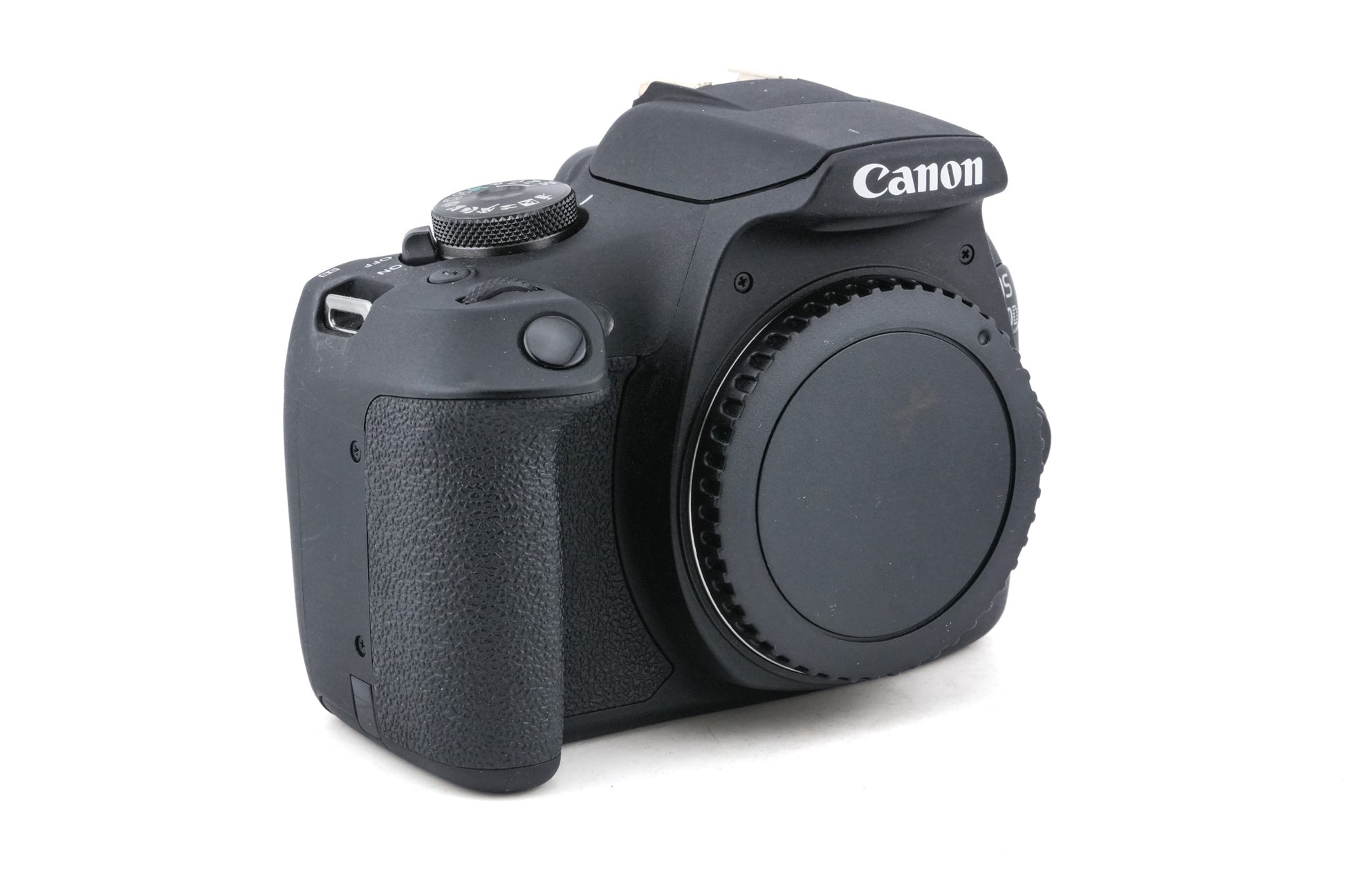 Autofocus APS-C DSLR EF-S-mount camera released by Canon in 2018. it has a built-in flash, 9 autofocus points, and records 1080p Full HD video. It is also known as the Rebel T7. Plastic body available in black.