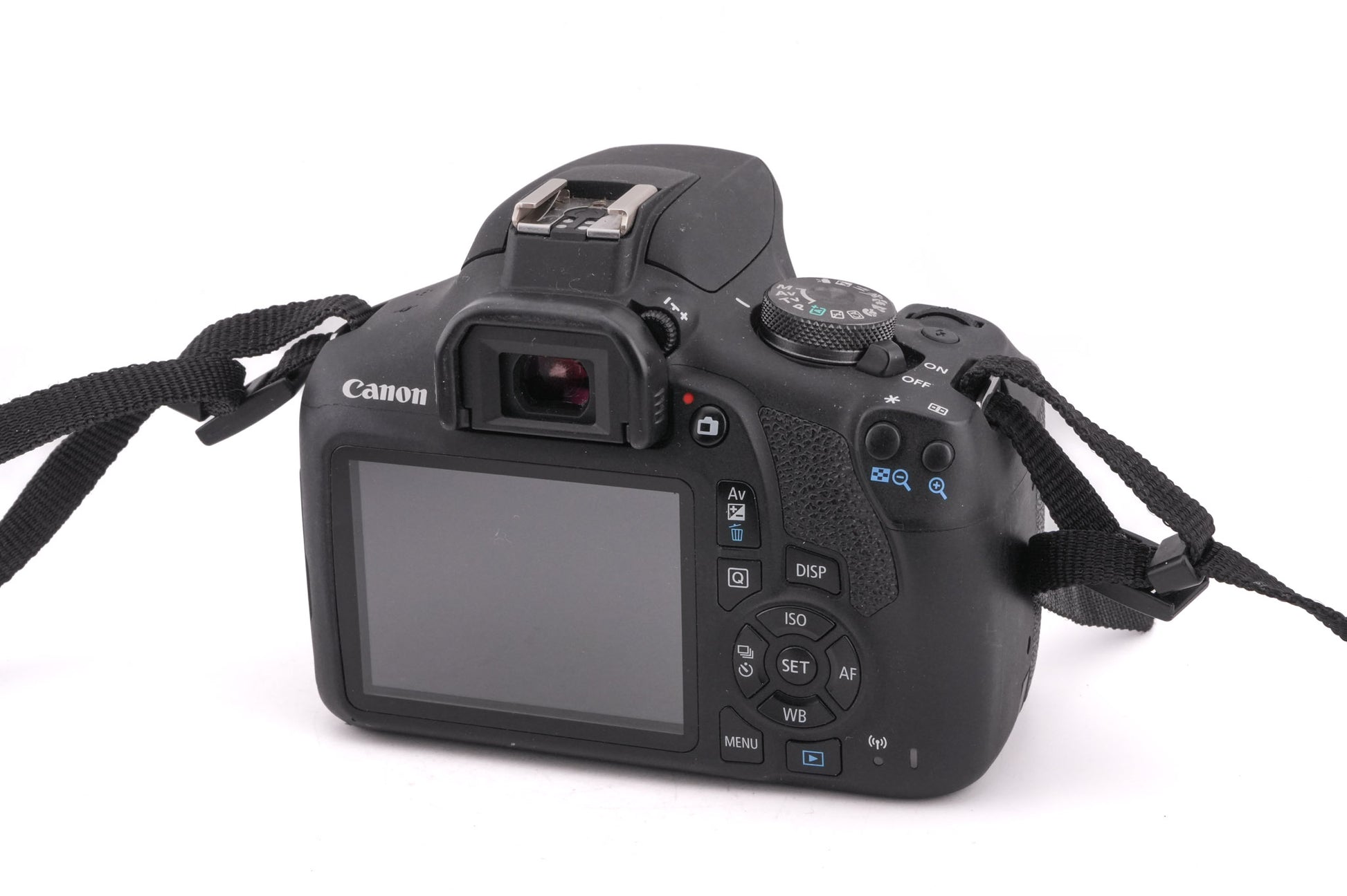 Autofocus APS-C DSLR EF-S-mount camera released by Canon in 2018. it has a built-in flash, 9 autofocus points, and records 1080p Full HD video. It is also known as the Rebel T7. Plastic body available in black.