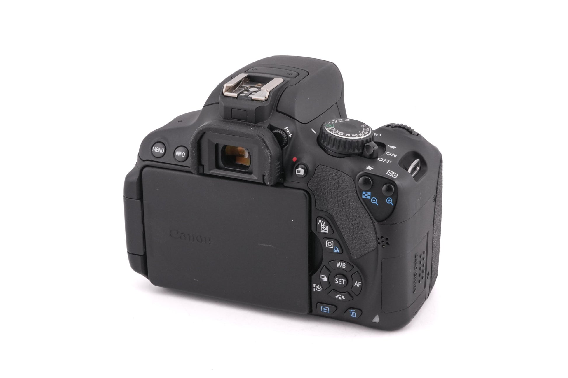 Autofocus EF-S mount DSLR camera released by Canon in 2012. It is Canon's first DSLR with continuous AF in video mode. It has an articulated rear screen. It was also sold as the EOS Rebel T4i (NA) and EOS Kiss X6i (JP). Plastic body available in black.