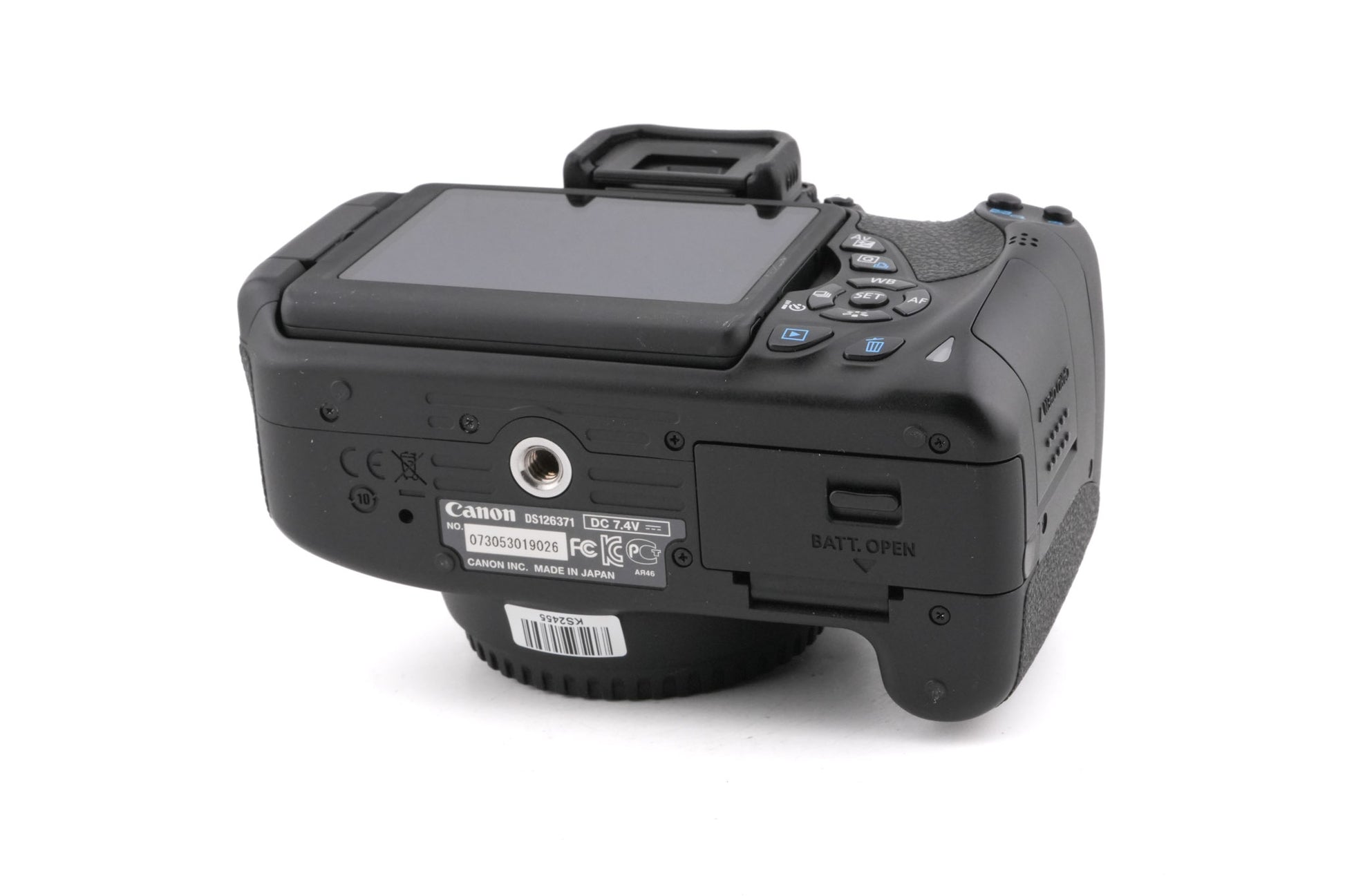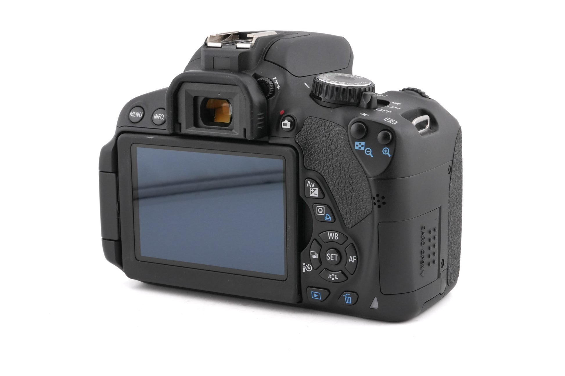 Autofocus EF-S mount DSLR camera released by Canon in 2012. It is Canon's first DSLR with continuous AF in video mode. It has an articulated rear screen. It was also sold as the EOS Rebel T4i (NA) and EOS Kiss X6i (JP). Plastic body available in black.
