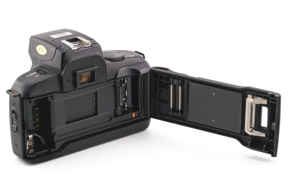 Autofocus EF-mount 35mm SLR camera released by Canon in 1988. This was the first Canon SLR to feature a built-in flash. The original price (62,000 Yen) is equal to ~490 Euros in 2023. Plastic body available in black.