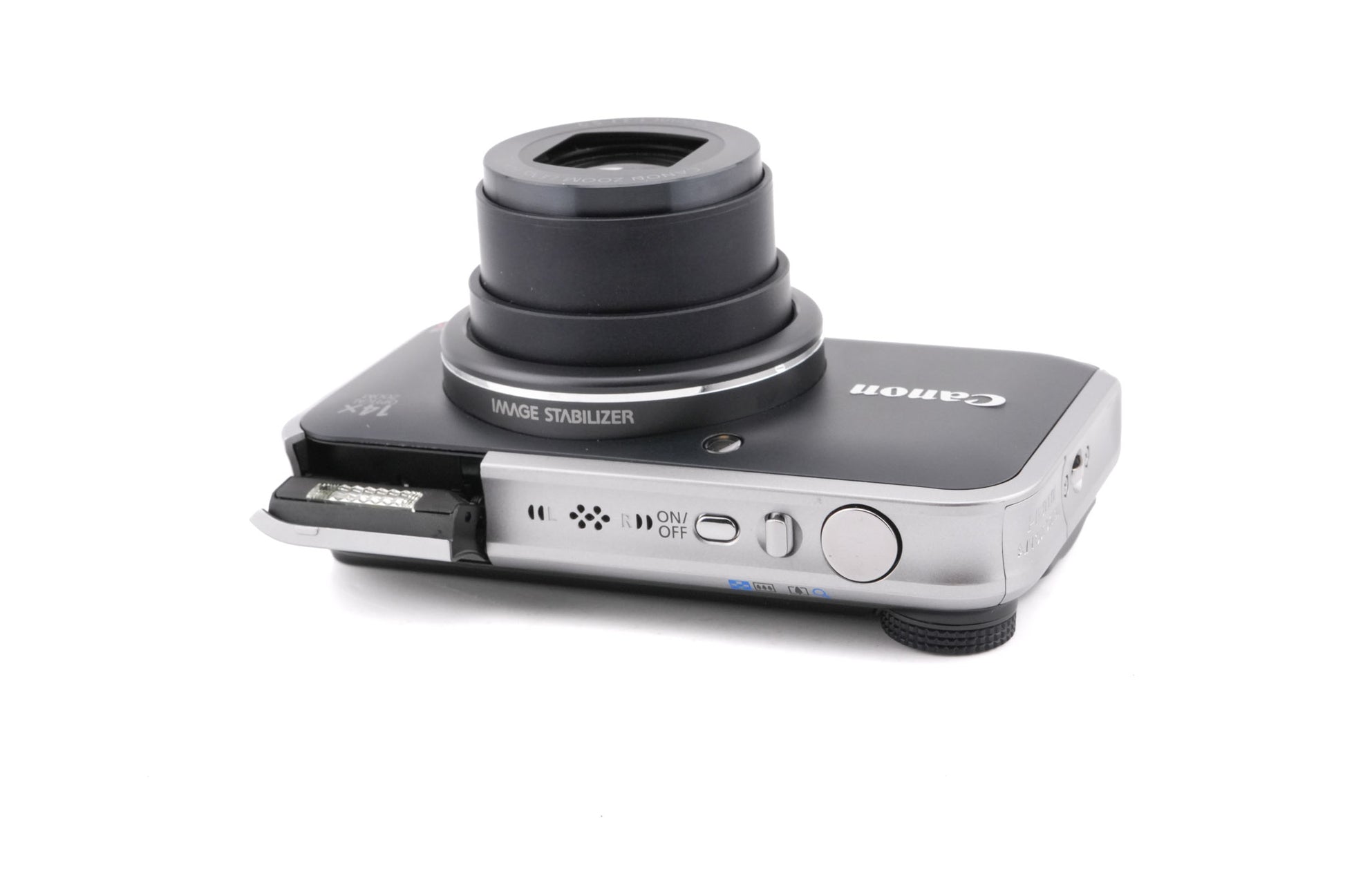 Autofocus digital point-and-shoot camera released by Canon in 2010. The lens gives the equivalent field of view to a 28 - 392mm lens on full frame/35mm. Metal body available in pink and black.