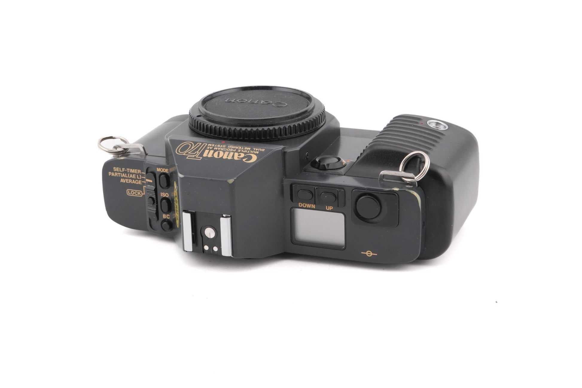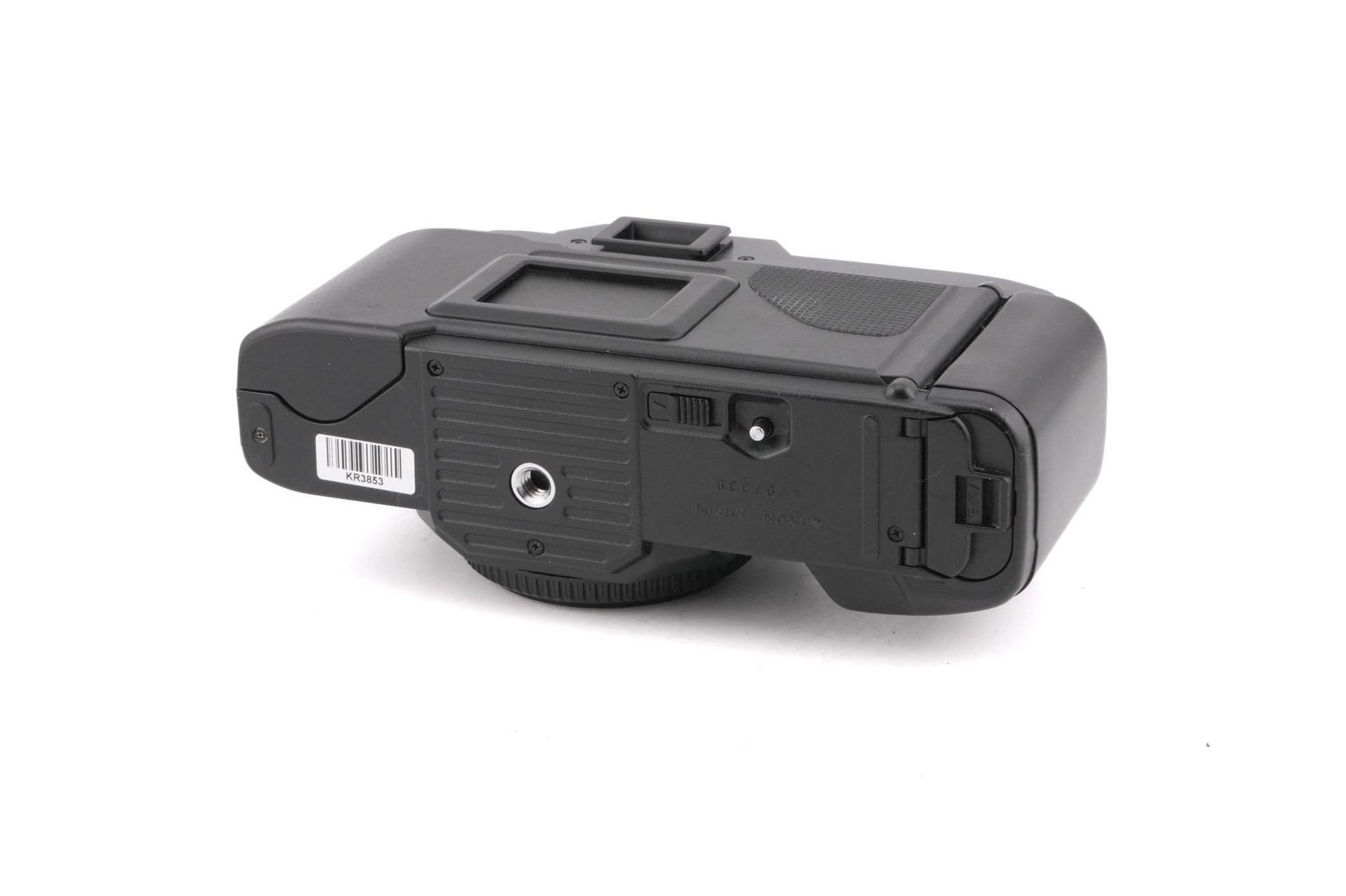 Manual focus FD-mount 35mm SLR released by Canon in 1984. The original cost (69,000 Yen) is equivalent to ~560 Euros in 2024. Plastic body available in dark grey and black.