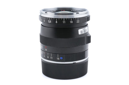 Manual focus wide angle lens made for Leica M mount rangefinder cameras by Cosina Carl Zeiss. Metal body available in black & silver.