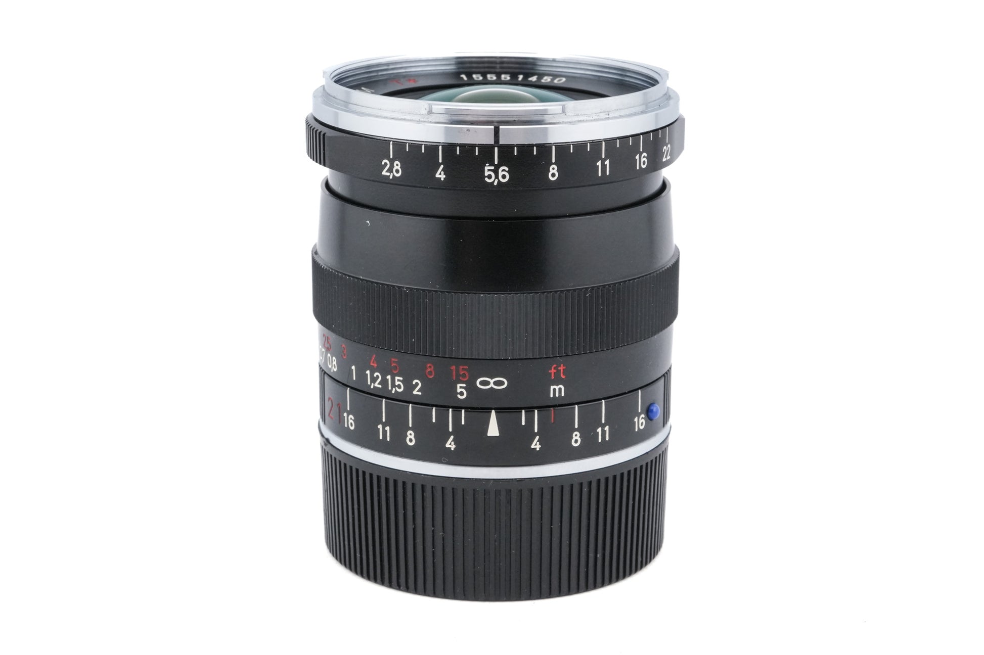 Manual focus wide angle lens made for Leica M mount rangefinder cameras by Cosina Carl Zeiss. Metal body available in black & silver.