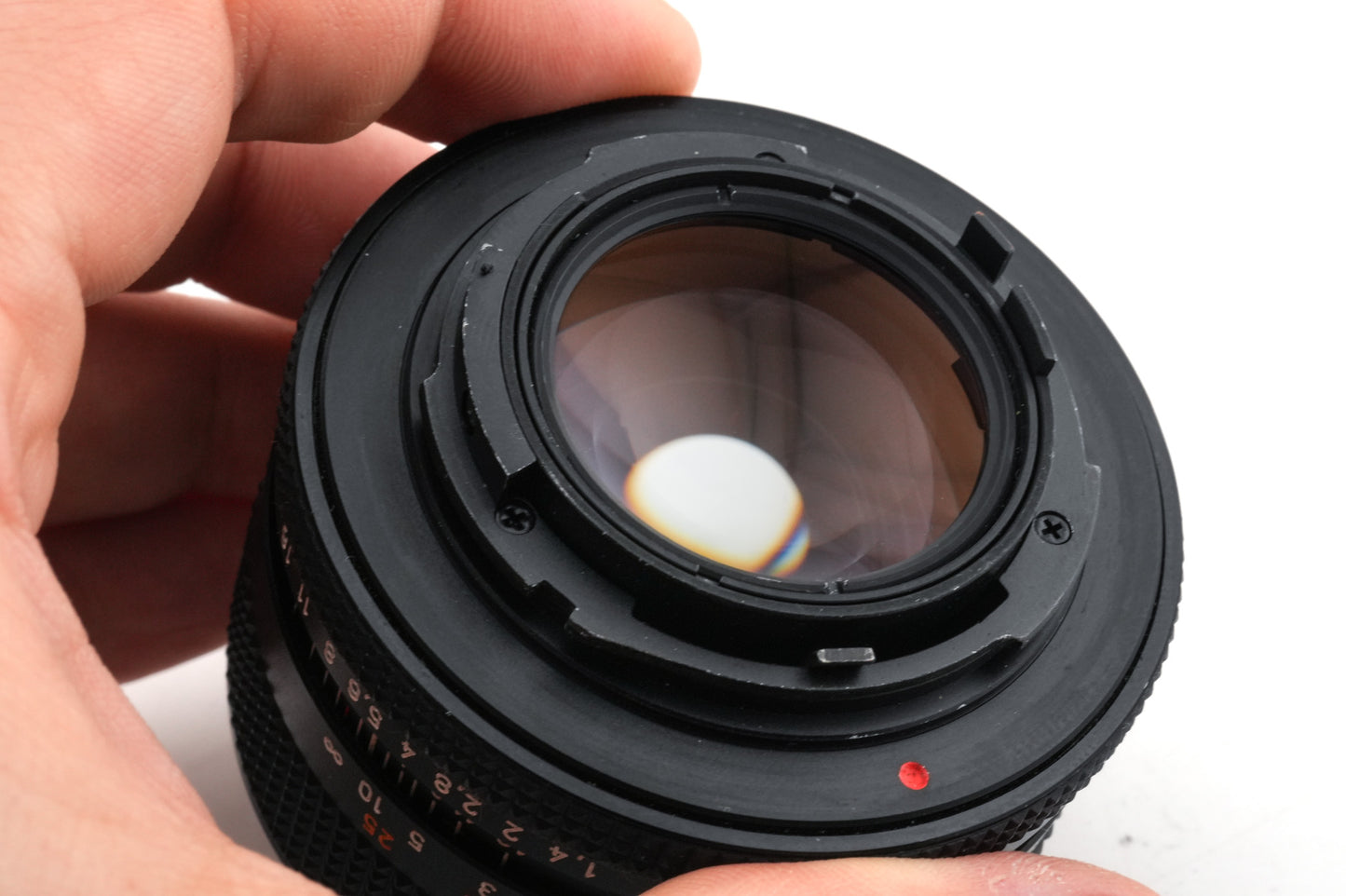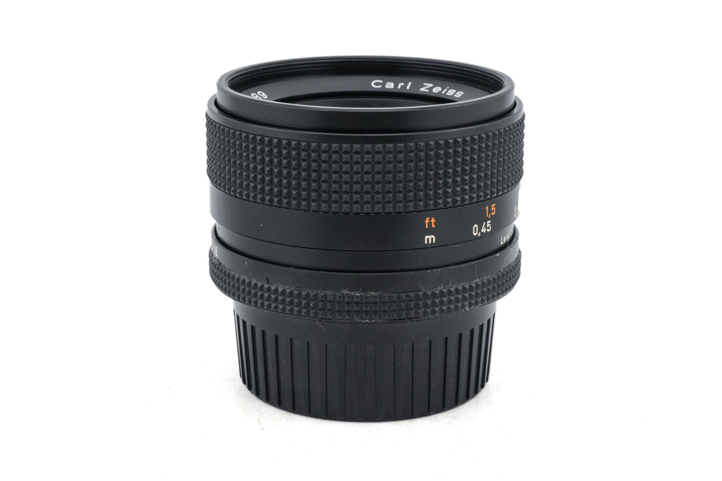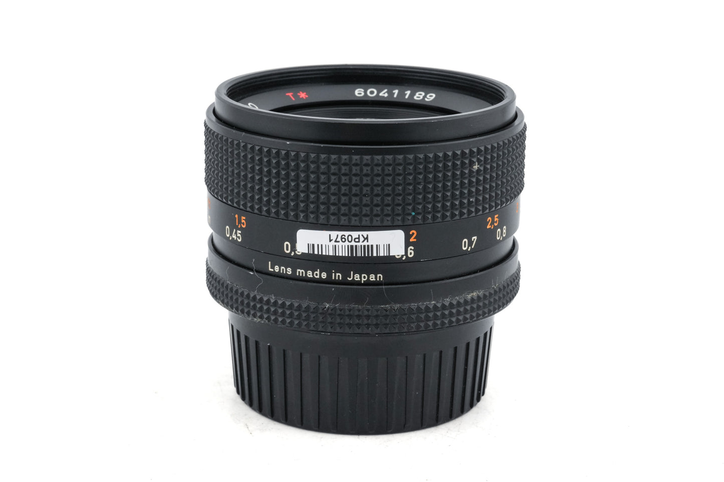 Manual focus normal lens made for Contax/Yashica mount 35mm SLR cameras introduced by Carl Zeiss in 1974. This lens is of the older AE variant with “ninja star” bokeh and no support for shutter priority or program modes. Metal body available in black.