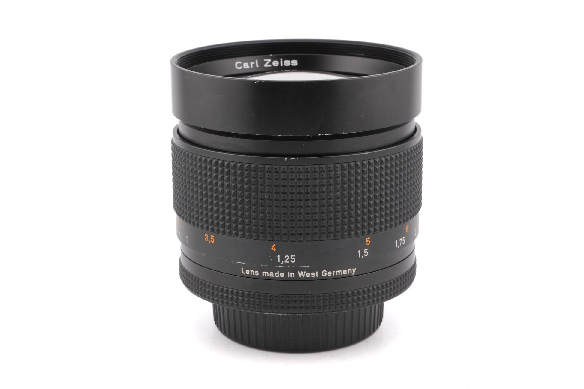 Manual focus telephoto lens made for Contax/Yashica mount 35mm SLR cameras introduced by Carl Zeiss in 1974. This lens is of the older AE variant with “ninja star” bokeh and no support for shutter priority or program modes. Metal body available in black.