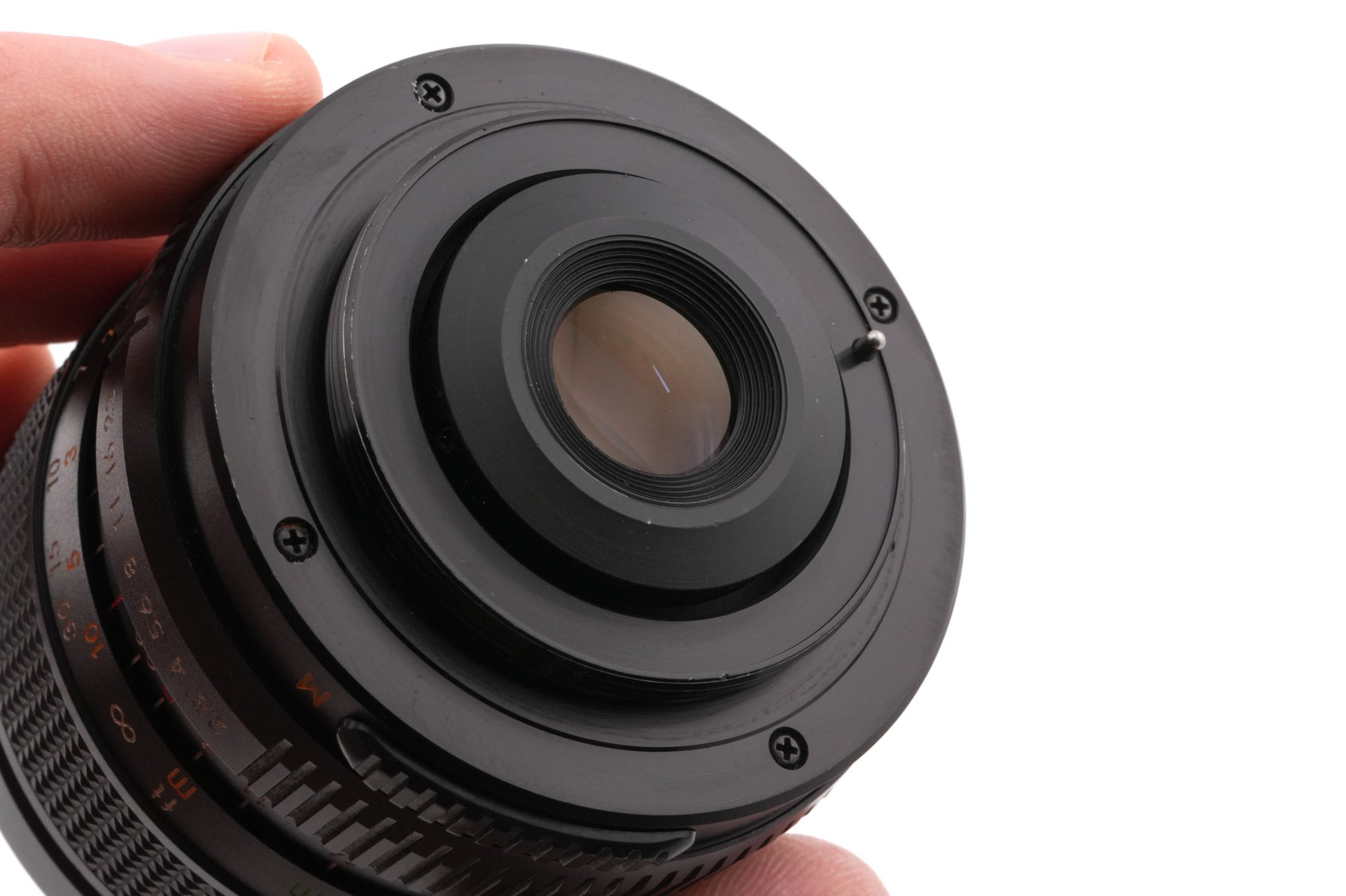 Manual focus wide normal lens made for M42 mount SLR cameras by Chinon. Metal body available in black.