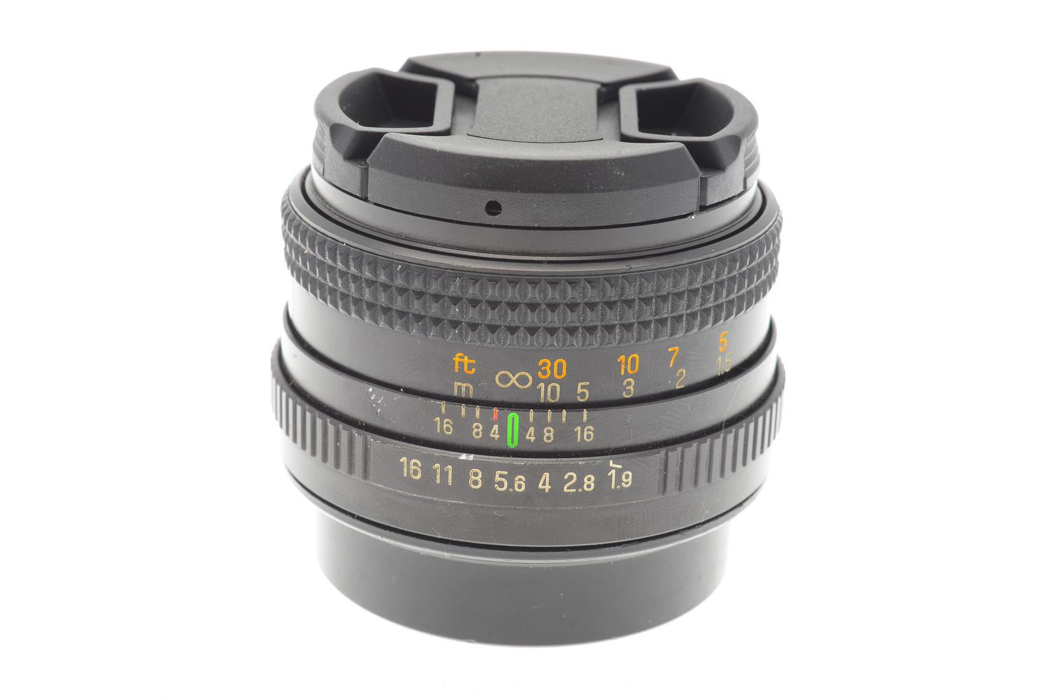 Manual focus normal lens made for Pentax K mount SLR cameras by Chinon. Metal and plastic body.