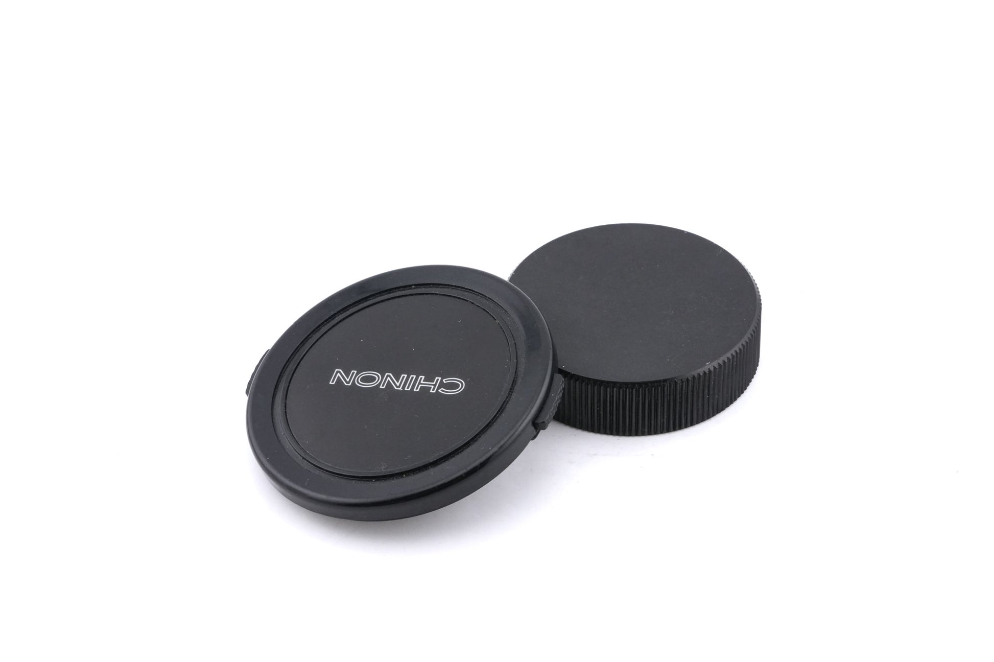 Manual focus normal lens made for M42 mount 35mm SLR cameras by Chinon. Chinon made a few different versions of this lens as their SLR designs evolved. Metal body available in black.