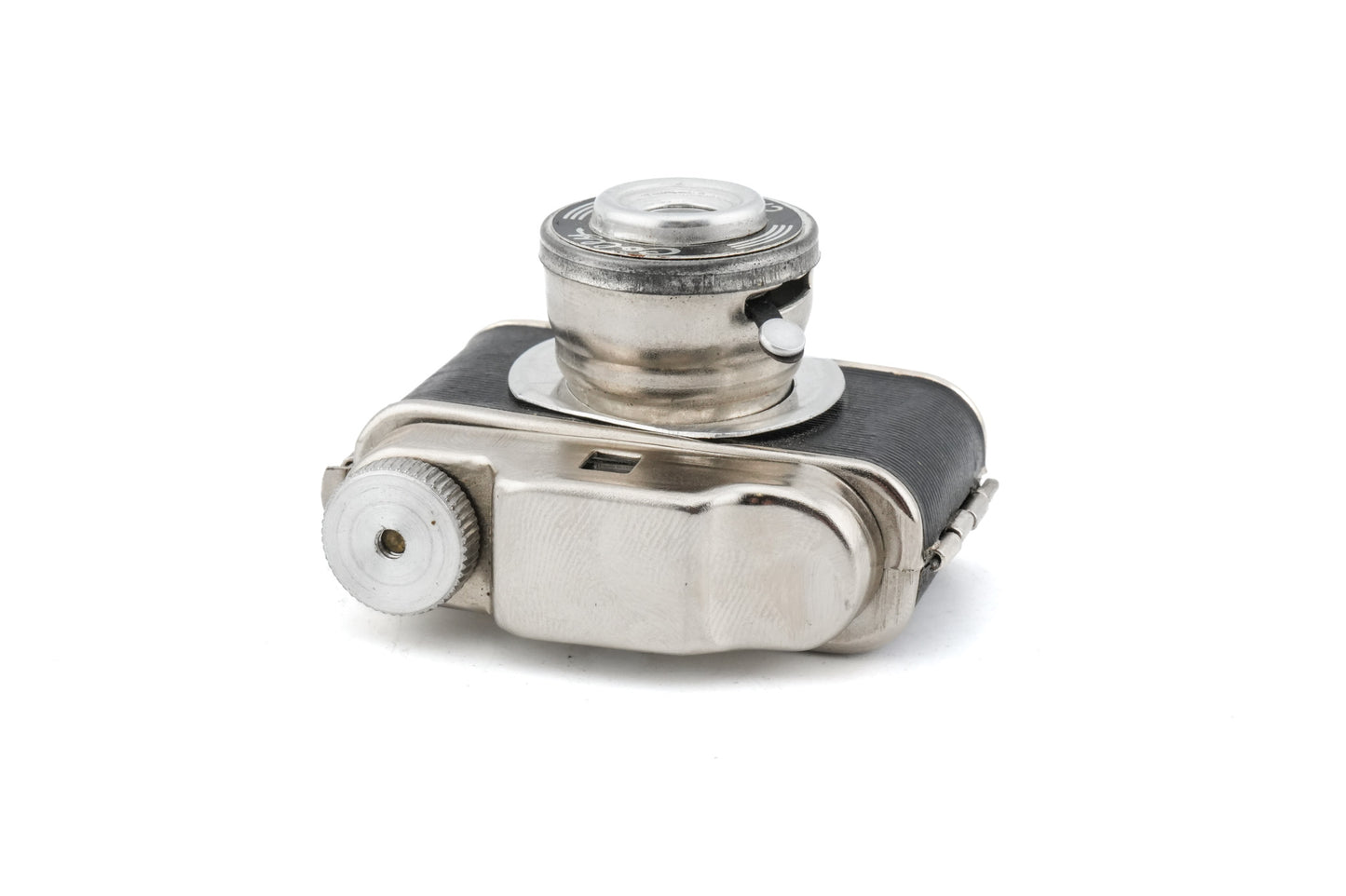 Fixed focus subminiature camera made by Colly. Metal body available in silver.