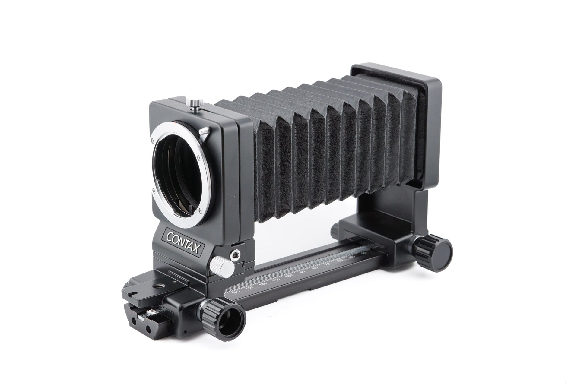 Extension bellows made for Contax/Yashica mount SLR cameras by Contax. Metal body available in black.