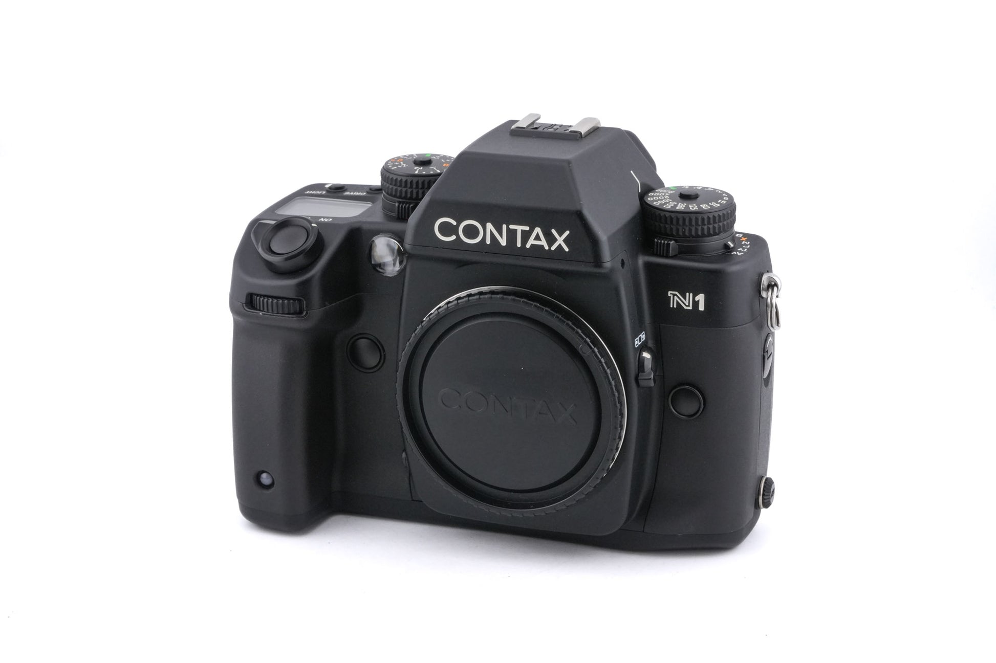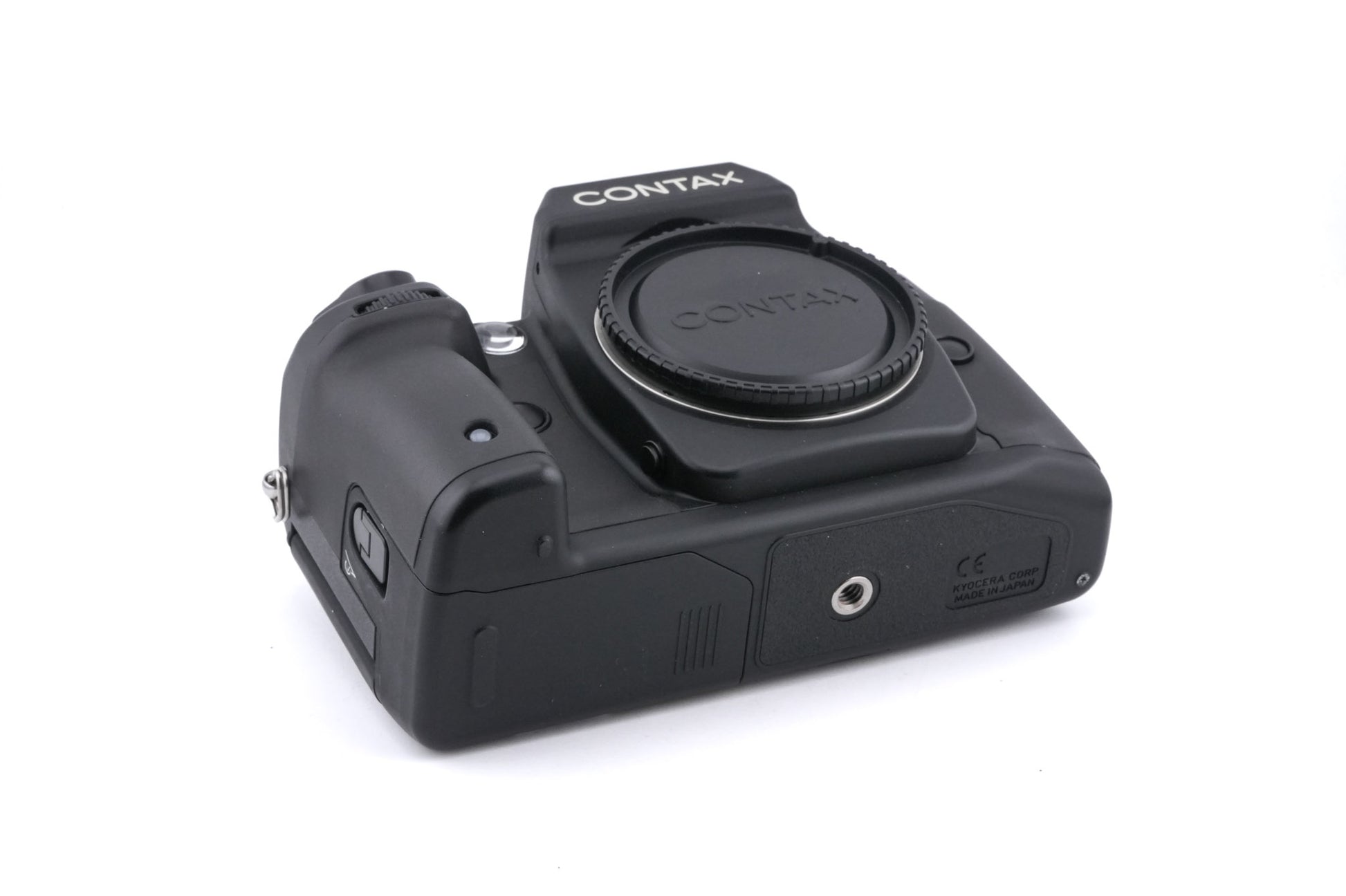 Autofocus N-mount 35mm SLR released by Contax in 2001. This was Contax/Kyocera's first fully autofocus 35mm SLR and the last professional film camera released by Contax. Plastic/metal body available in black.