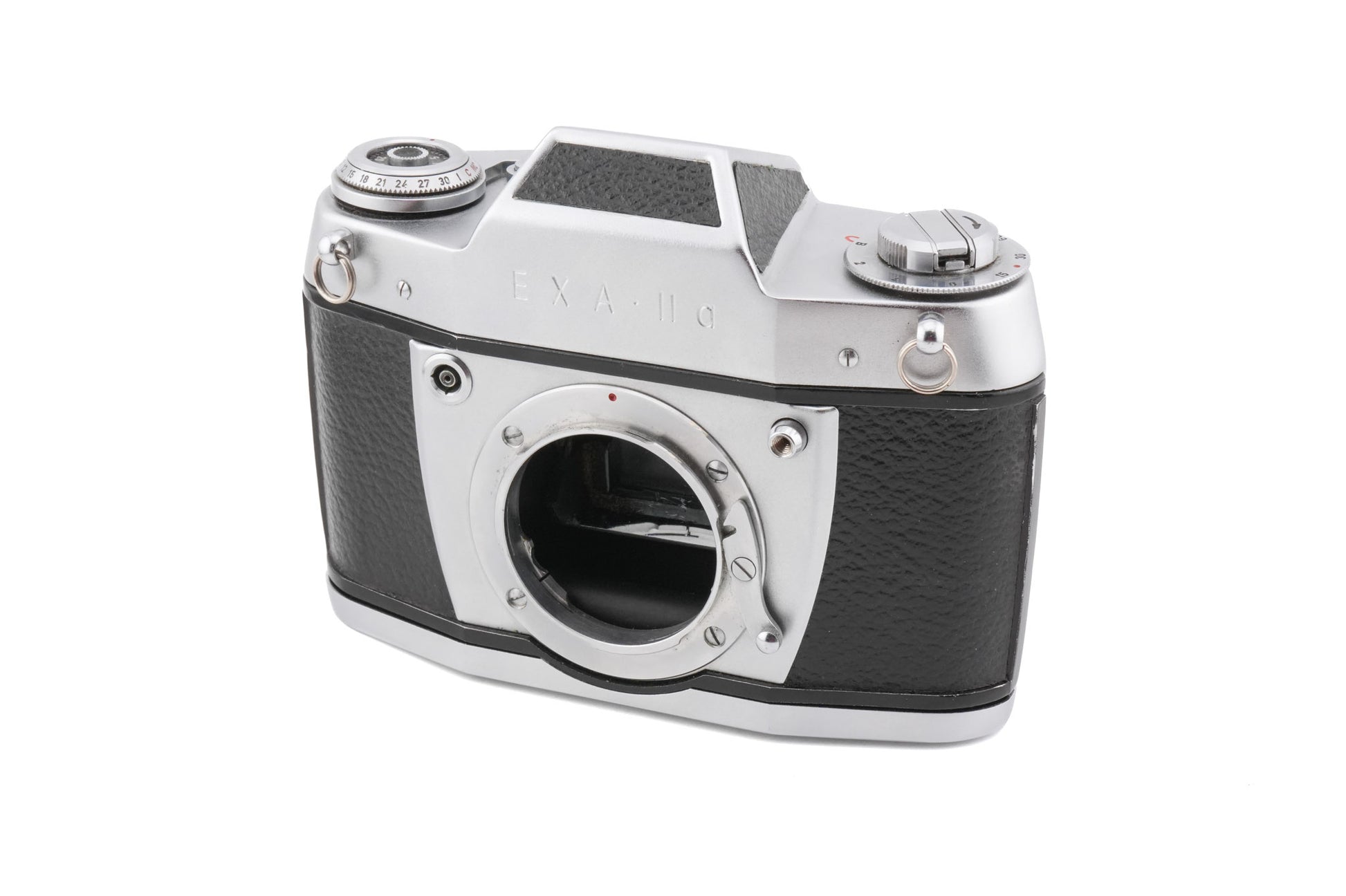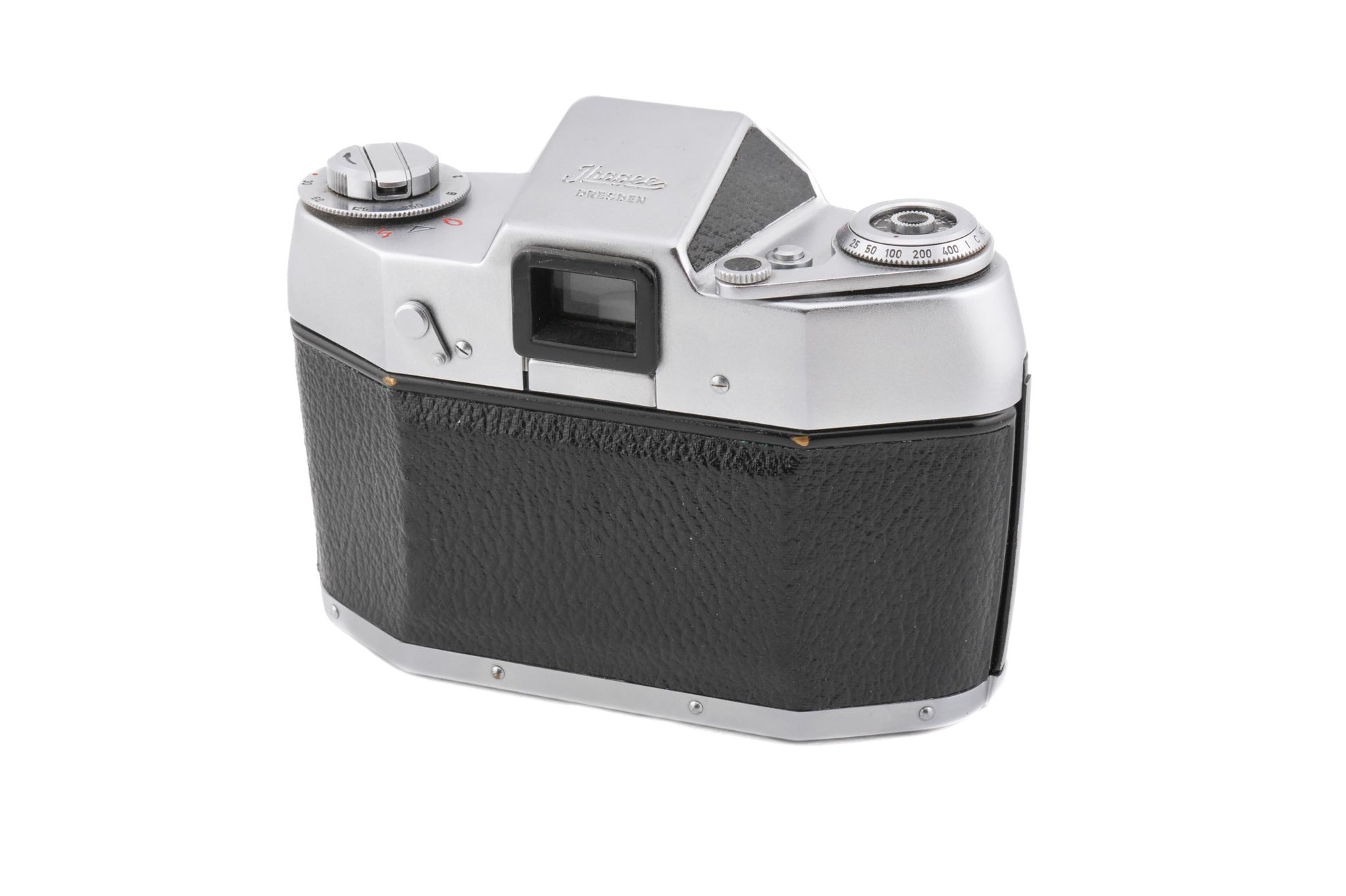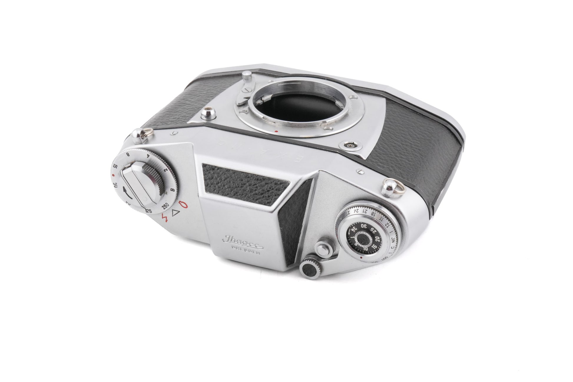 Manual focus Exakta mount 35mm SLR camera manufactured by Ihagee between 1960-1963. Metal body available in black & silver.