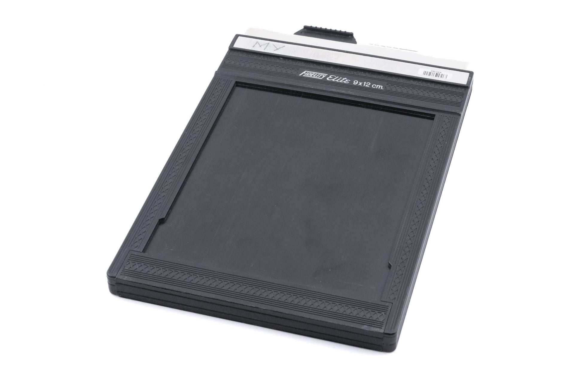 9x12cm sheet film holder made by Fidelity. Each holder can hold two sheets of film, one on each side. Made in the USA. Plastic body available in black.