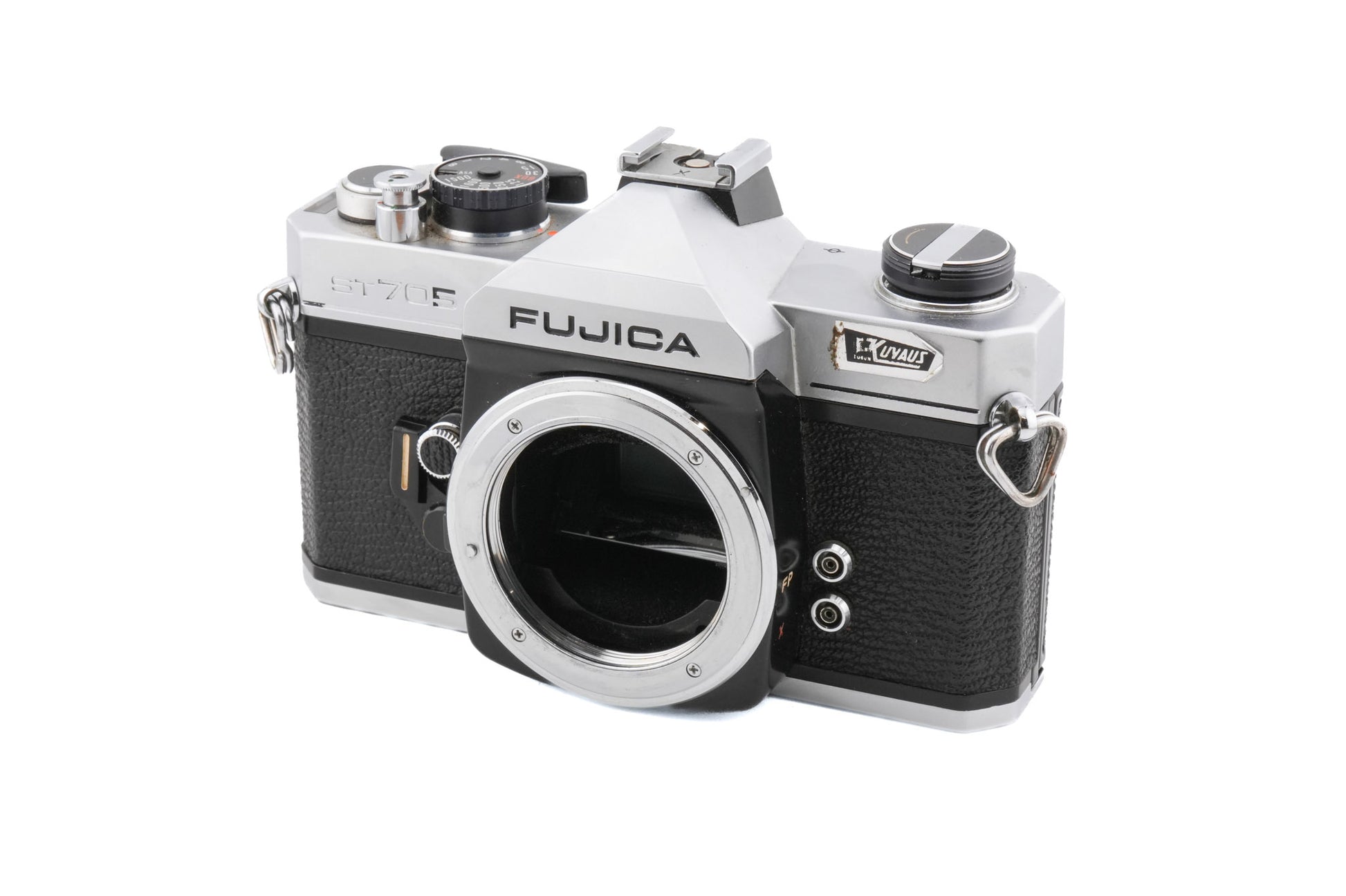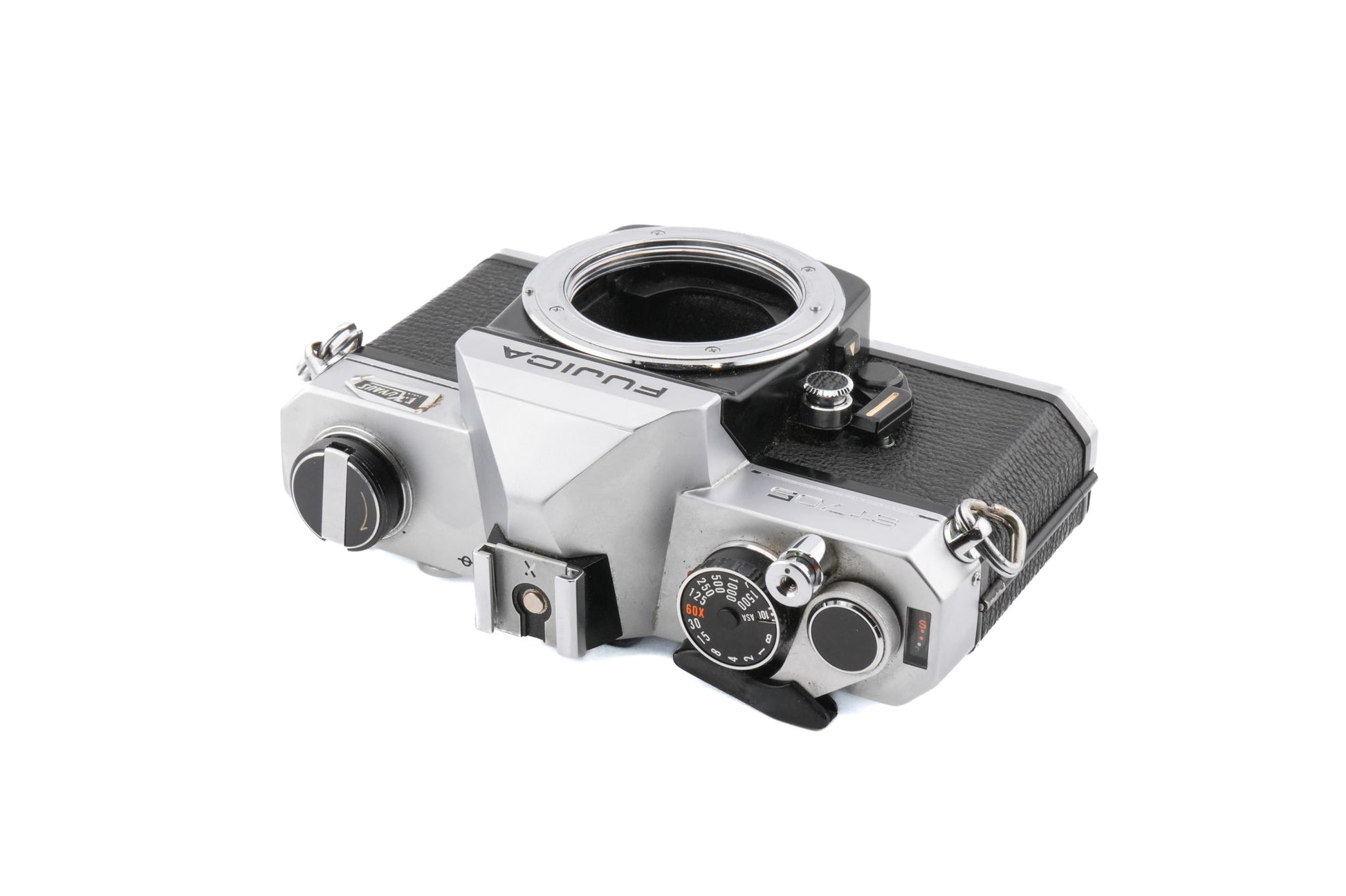 Manual focus M42 mount 35mm SLR released by Fujica in 1977. It has a built-in light meter. Metal body available in black or silver.