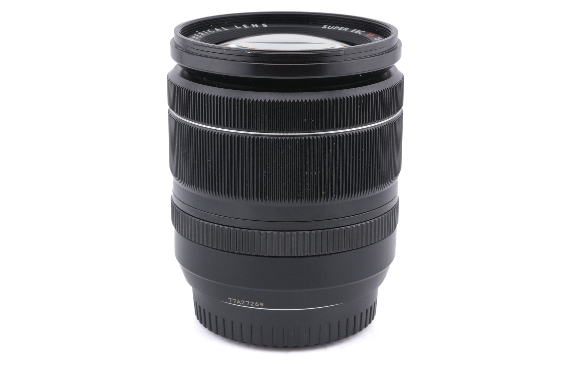 Autofocus normal zoom lens made for X-mount mirrorless digital cameras by Fujifilm. The lens is designed for APS-C-sized sensors and gives the equivalent field of view to a 27-84mm lens on 35mm / full frame. It has internal optical stabilization (OIS), a linear focusing motor (LM), and a dedicated aperture ring (R). Metal/plastic body available in black.