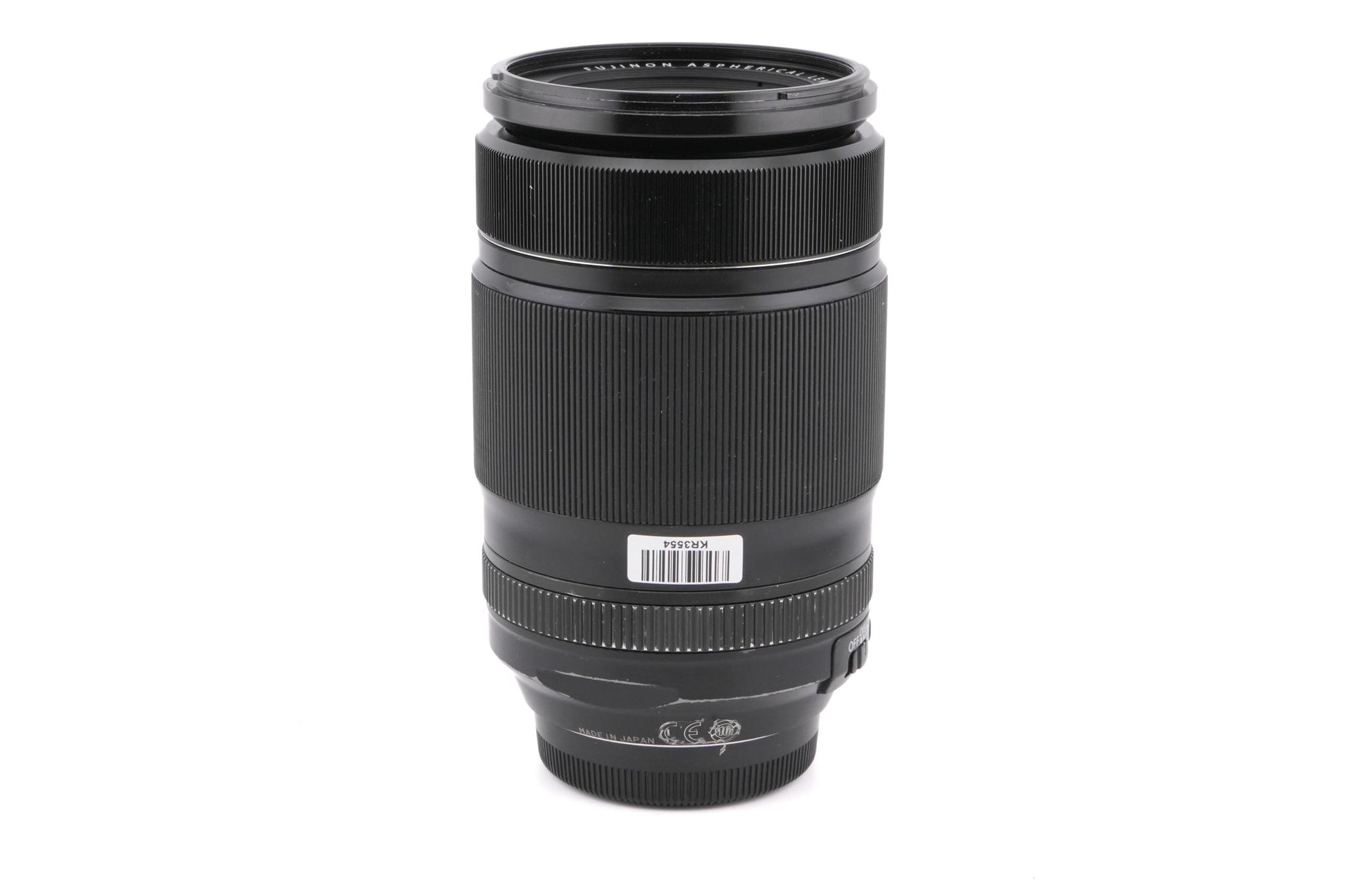 Autofocus telephoto zoom lens made for X-mount digital mirrorless cameras by Fujifilm. It's designed for APS-C-sized sensors and gives the equivalent field of view to an 82.5-300mm lens on full frame/35mm. The lens features an image stabilizer (OIS), an aperture ring (R), and a linear motor (LM) for autofocus. Metal and plastic body available in black.