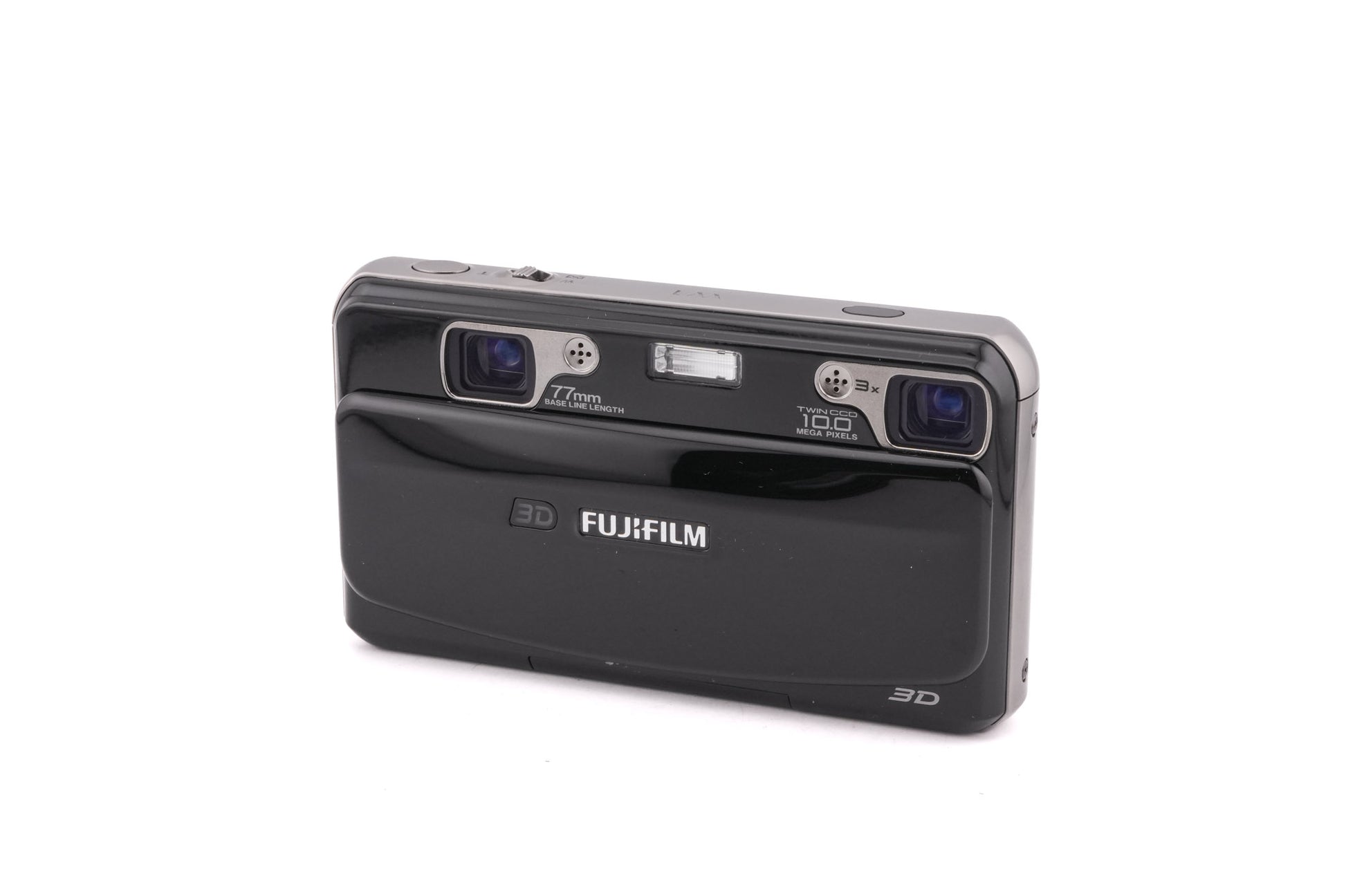 Autofocus 3D digital camera introduced by Fujifilm in 2009. It was Fujifilm's first 3D camera. It has a 35 - 105 mm equivalent focal length, a 2.8" rear LCD, and records 640 x 480 (30 fps) video. Plastic and metal body available in black.