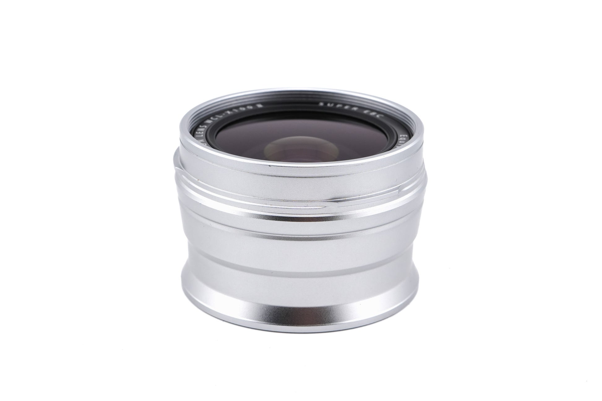 Wide conversion lens made for the Fujifilm X100 series compact cameras introduced by Fujifilm. It converts the lens to 28mm (full frame equivalent). Metal body available in black and silver.