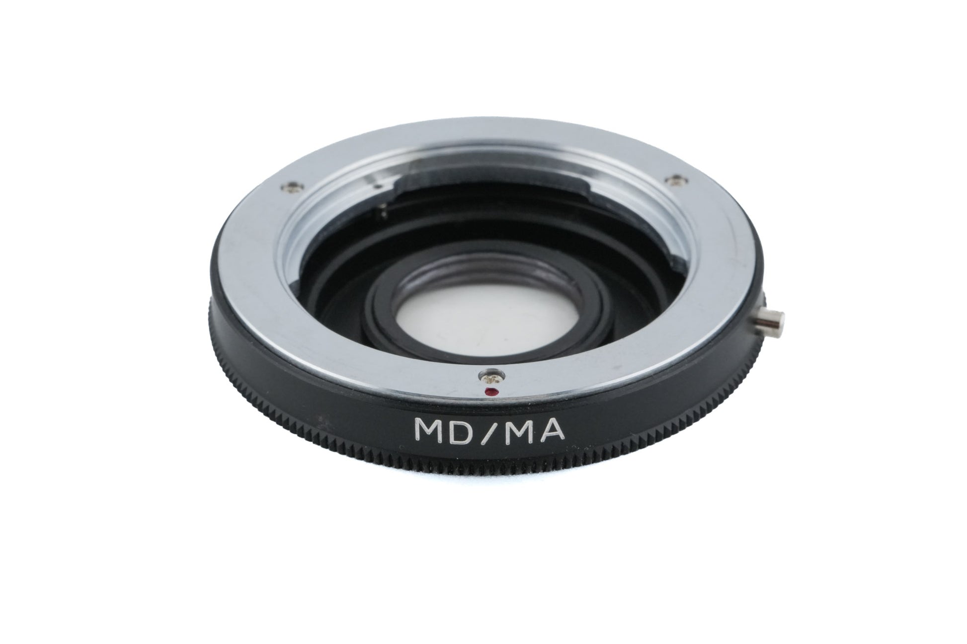 Optical lens adapter made to allow Minolta MD-mount lenses to be mounted onto Minolta AF-mount bodies. Available in different designs.