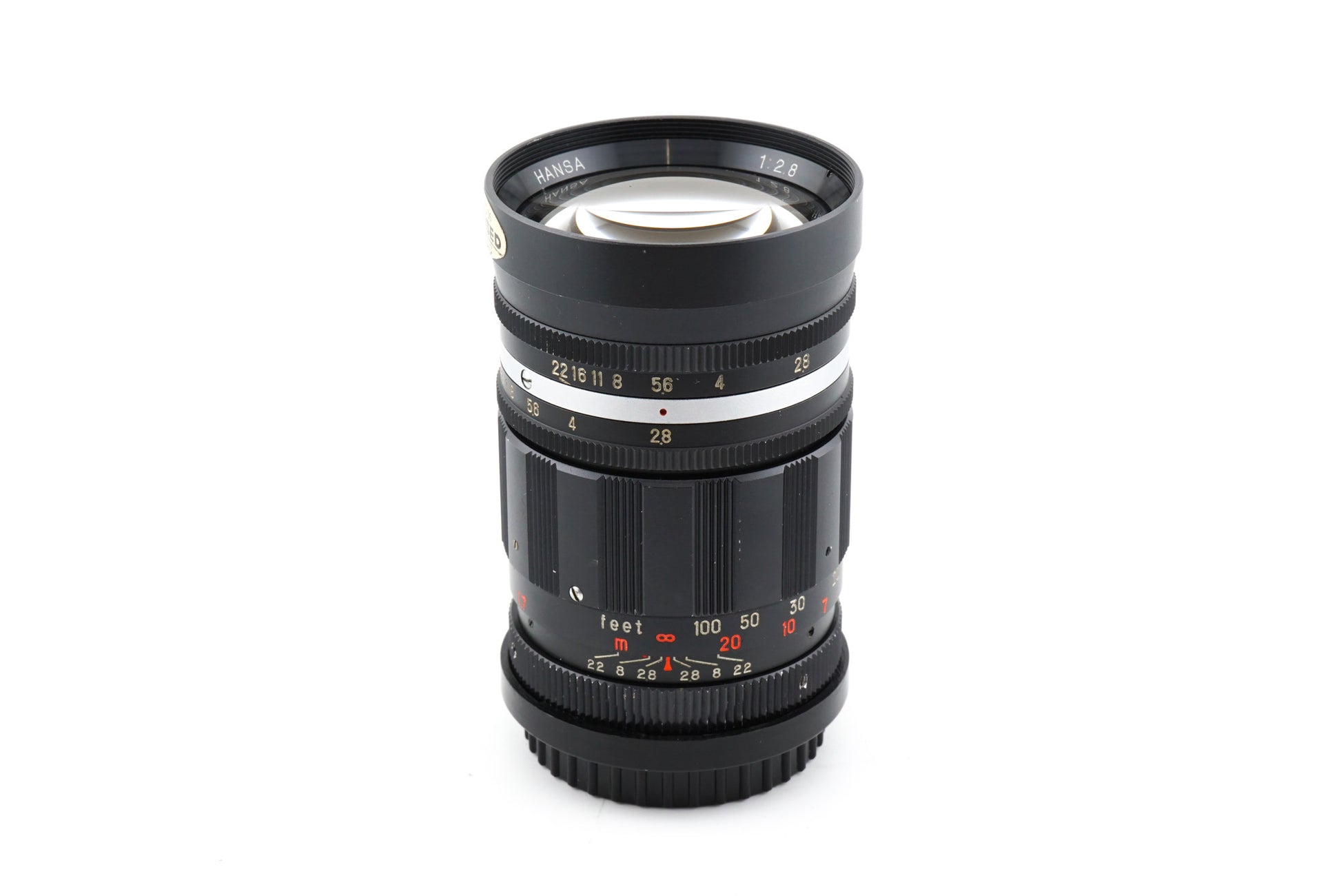 Manual focus telephoto prime lens made for Petri mount SLR cameras by Hansa. Has both auto aperture stop down and manual mode. Metal body available in black.