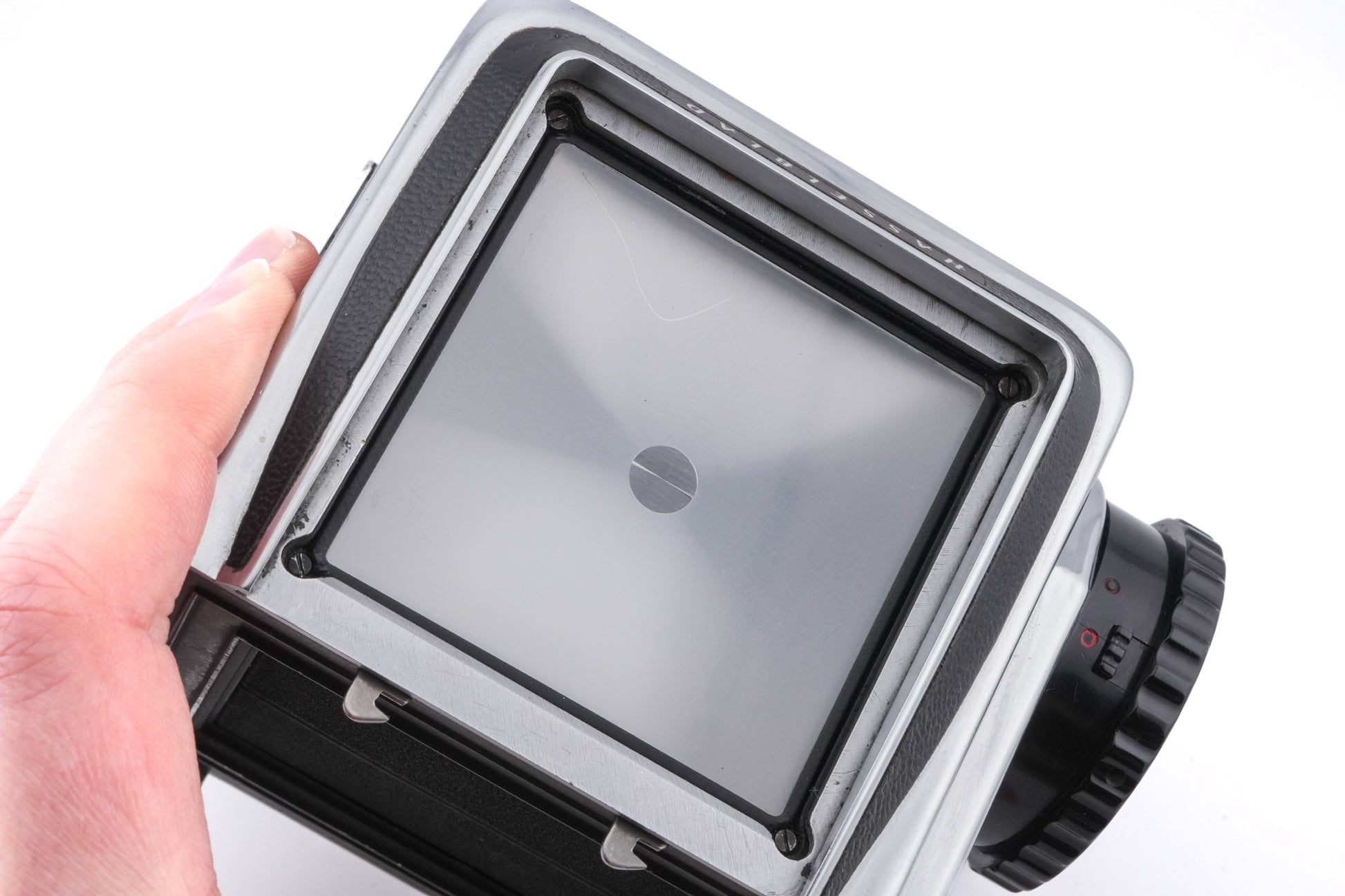 Hasselblad 503CXi (10026 / 10172) + A12N Film Magazine + Waist Level Finder (New / Chrome, 42315) + 80mm f2.8 Planar T* CF (20029) + Acute-Matte D Microprism / Split Image Focusing Screen (42215)