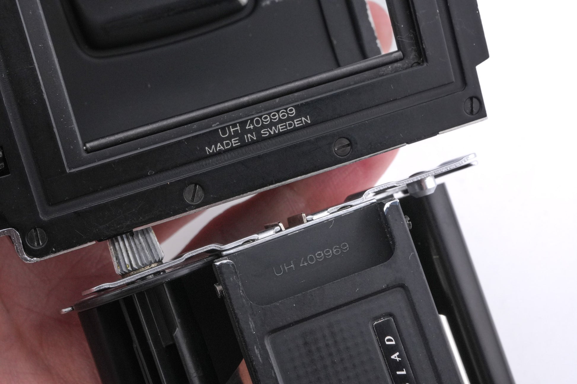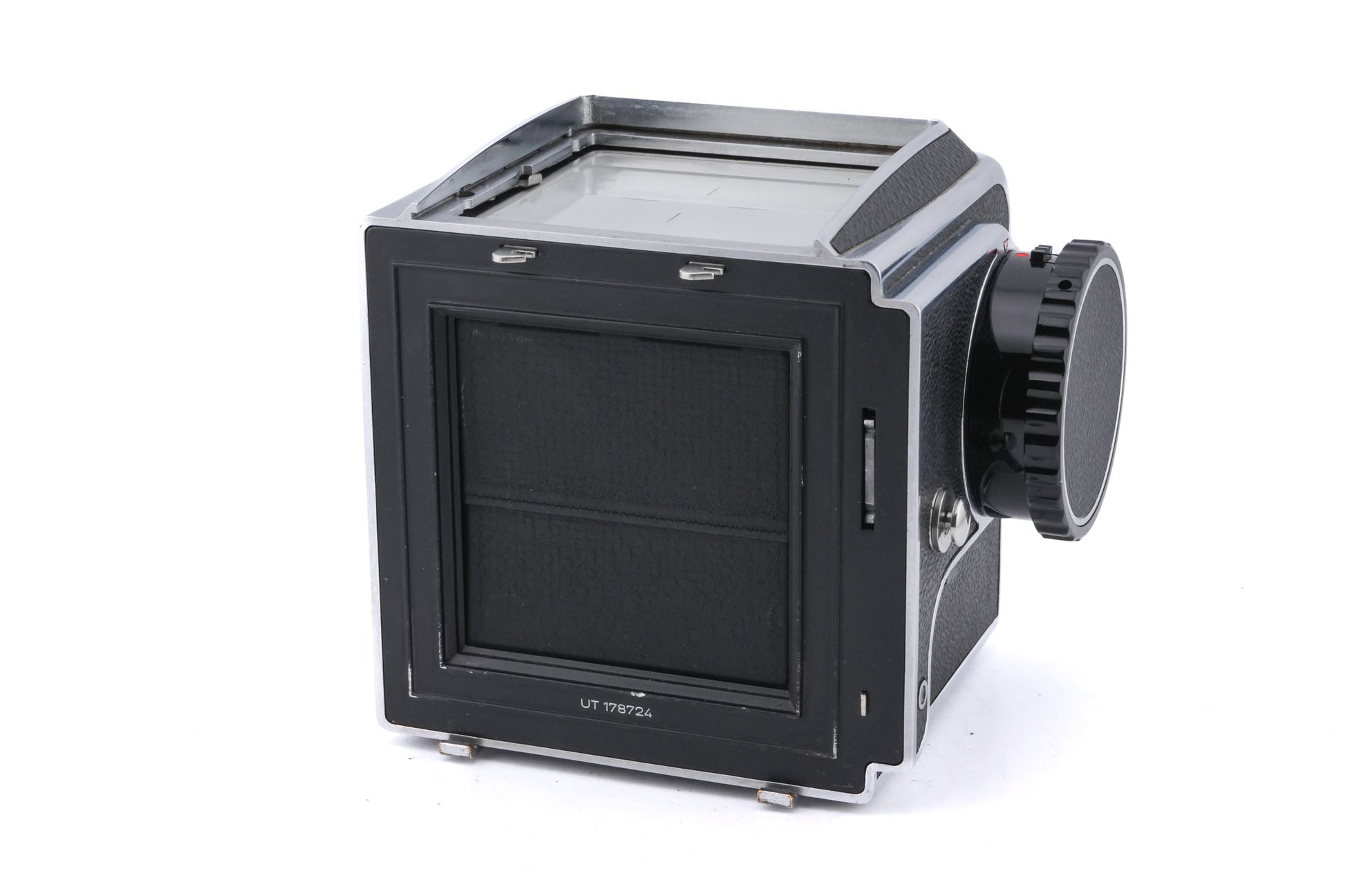 Manual focus V series 120 SLR camera released by Hasselblad in 1970. Its major improvement over the 500C was the addition of a user-interchangeable focusing screen. It is a system camera with interchangeable lenses, prisms, grips, winders, and film backs. Metal body available in black (10170) and silver (10026).