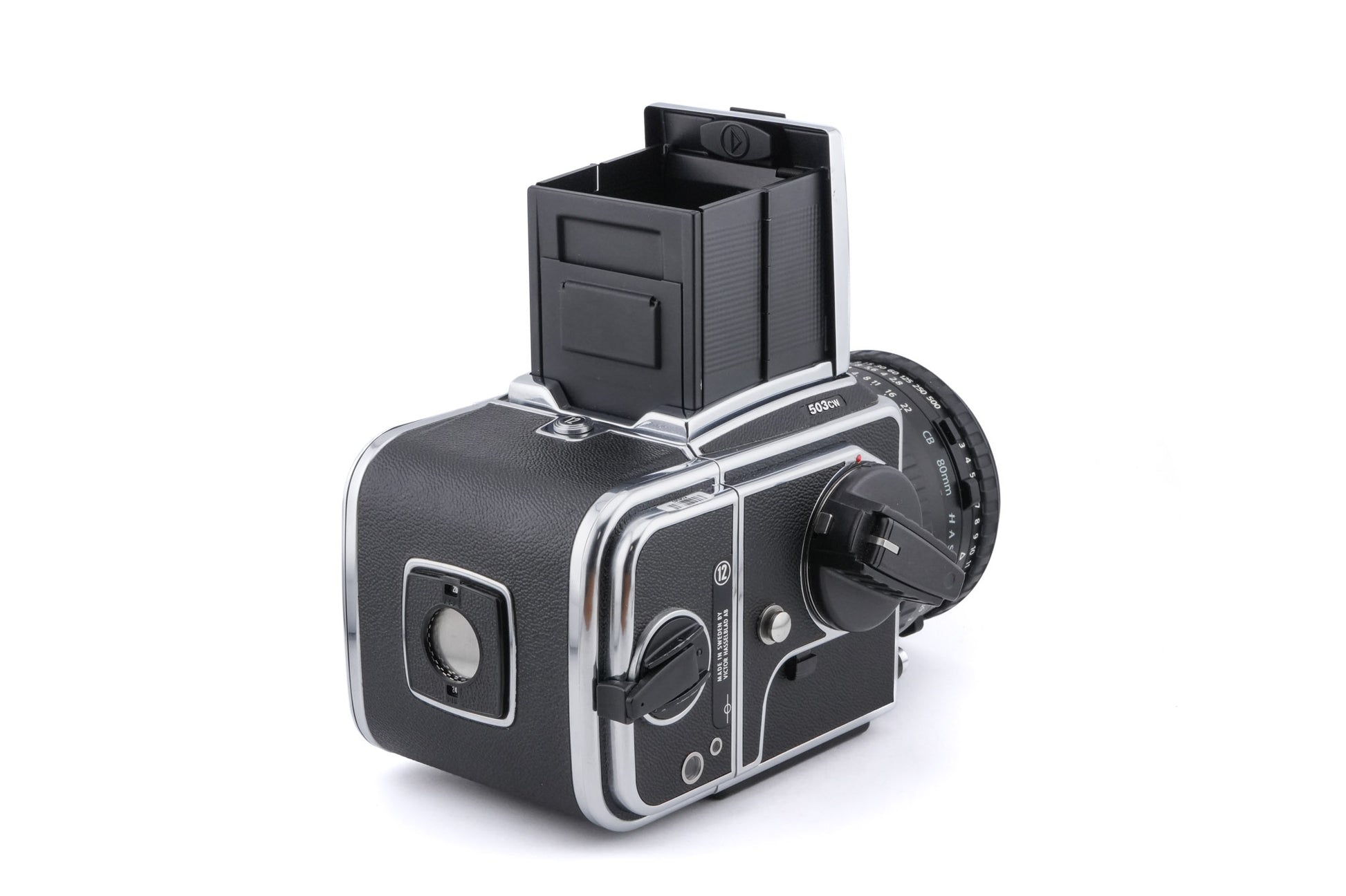 Manual focus V-mount 120 6x6 SLR camera released by Hasselblad in 1996. This model changed the mirror geometry to eliminate image cut-off when using telephoto lenses. It has TTL and OTF flash capabilities. An electric winder was made specifically for the 503CW. Metal body available in black and silver.