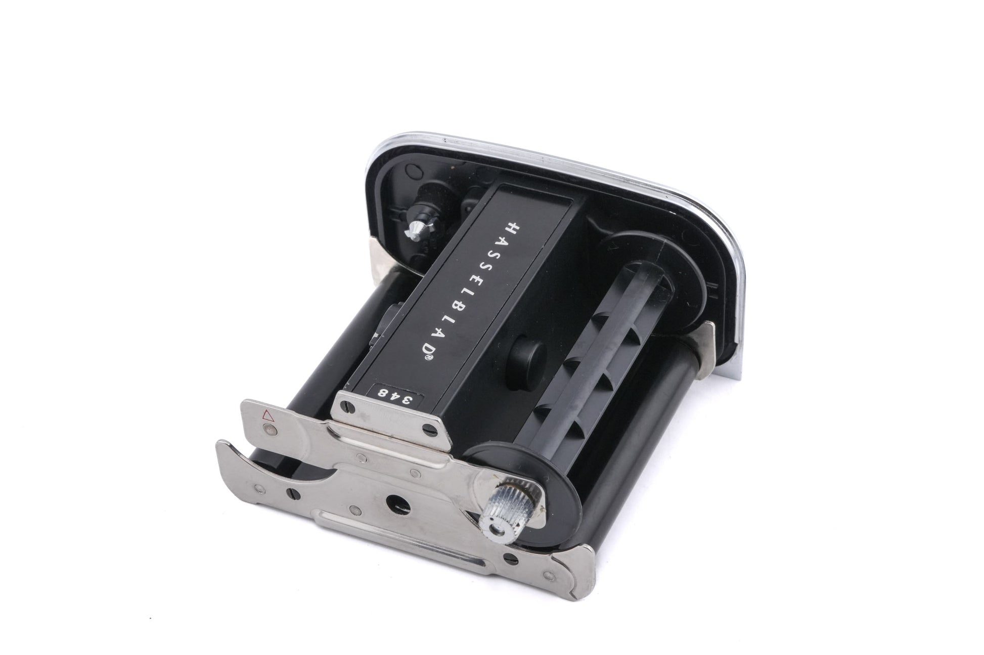 6x6 120 roll film magazine made for the Hasselblad V system medium format cameras introduced by Hasselblad in 1985. A12N ("New") is not a factory designation but one that seems to be in general use to differentiate the early and later versions of the A12. Several changes were made both internally and externally. Most noticeably the change from two spool-holders to only one, the number "12" written on the release button, and the "Made in Sweden by Victor Hasselblad" on the side. There is also a variant available with the text "A12–6x6" instead of a number on the release button. In 1997 the magazines were fitted with a built-in dark slide holder on the back. Metal body available in silver and black (30213).