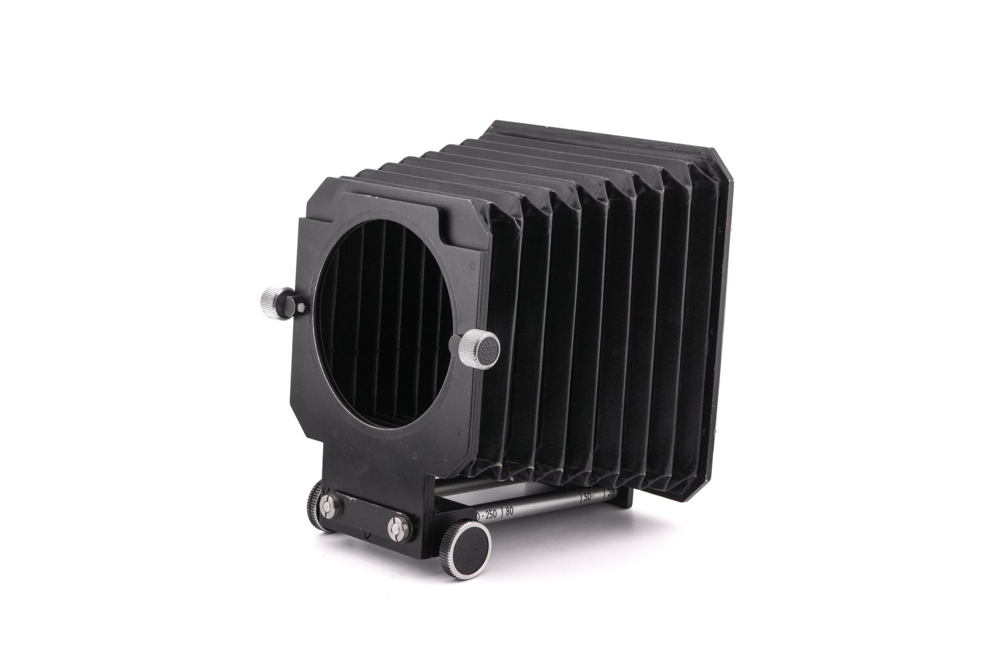 Professional lens shade made for the V system introduced by Hasselblad and manufactured from 1969 to 1981. This was the first version of the pro lens hoods and covers 38 - 250mm lenses. Metal and leather body available in black.
