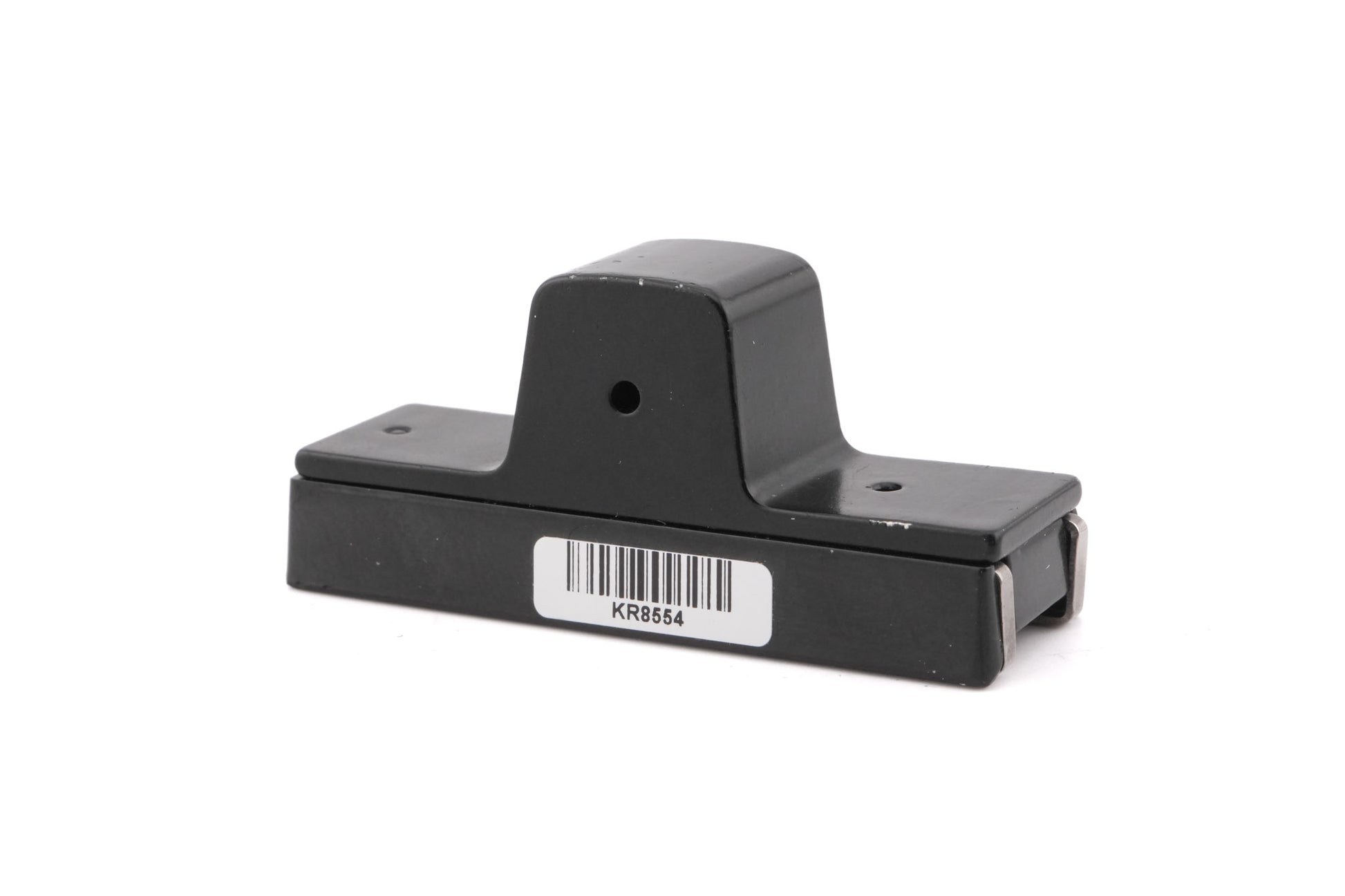 Bubble-level attachment for Hasselblad V cameras made by Hasselblad. Slides over the Hasselblad logo accessory shoe on the left side of the camera. Black metal and plastic construction.