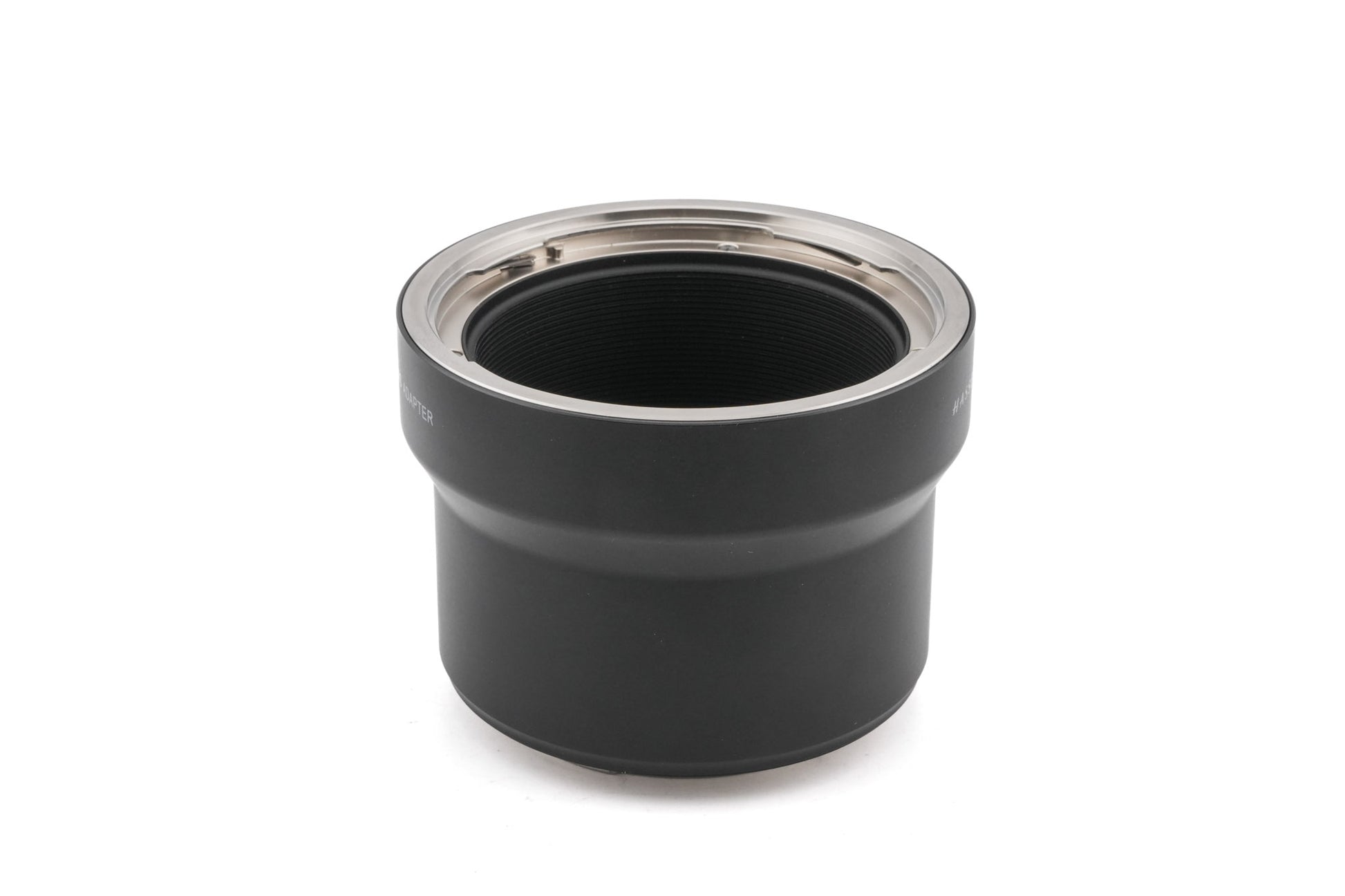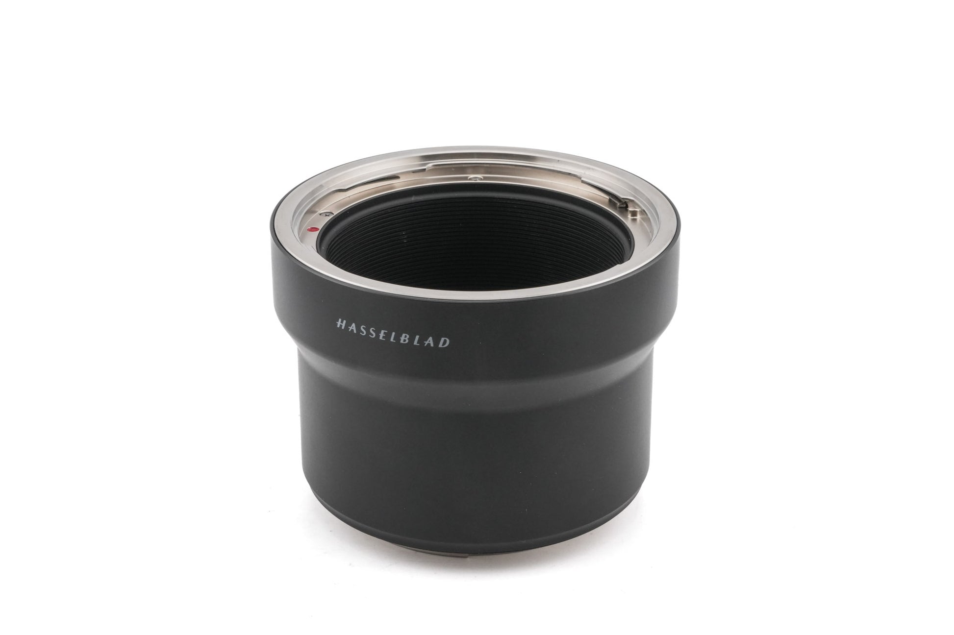 Lens adapter made by Hasselblad for the Hasselblad X1D mirrorless digital camera. Allows Hasselblad V system lenses to be adapted onto the X1D. This requires the use of the electronic shutter, as the adapter has no means to control the leaf shutter in the lens. Metal body available in black.