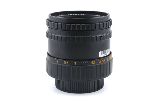 Manual focus normal lens made for M42 mount SLR cameras in the former Soviet Union. The lens is an optical copy of the Carl Zeiss 58mm f2 Biotar. Metal body available in black.