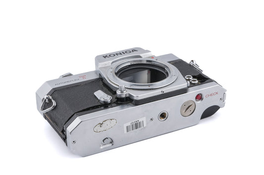 Manual focus AR-mount 35mm SLR camera released by Konica in 1968. It was the first 35mm SLR with auto-exposure and TTL metering. Metal body available in black & silver.